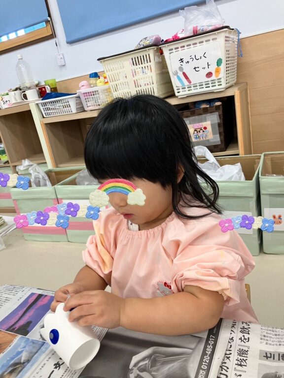 水遊びプール遊びを十分に楽しんだ子ども達‼️大好きな製作遊びを、1カ月後のハロウィン🎃を見据えて沢山楽しんでいます💖