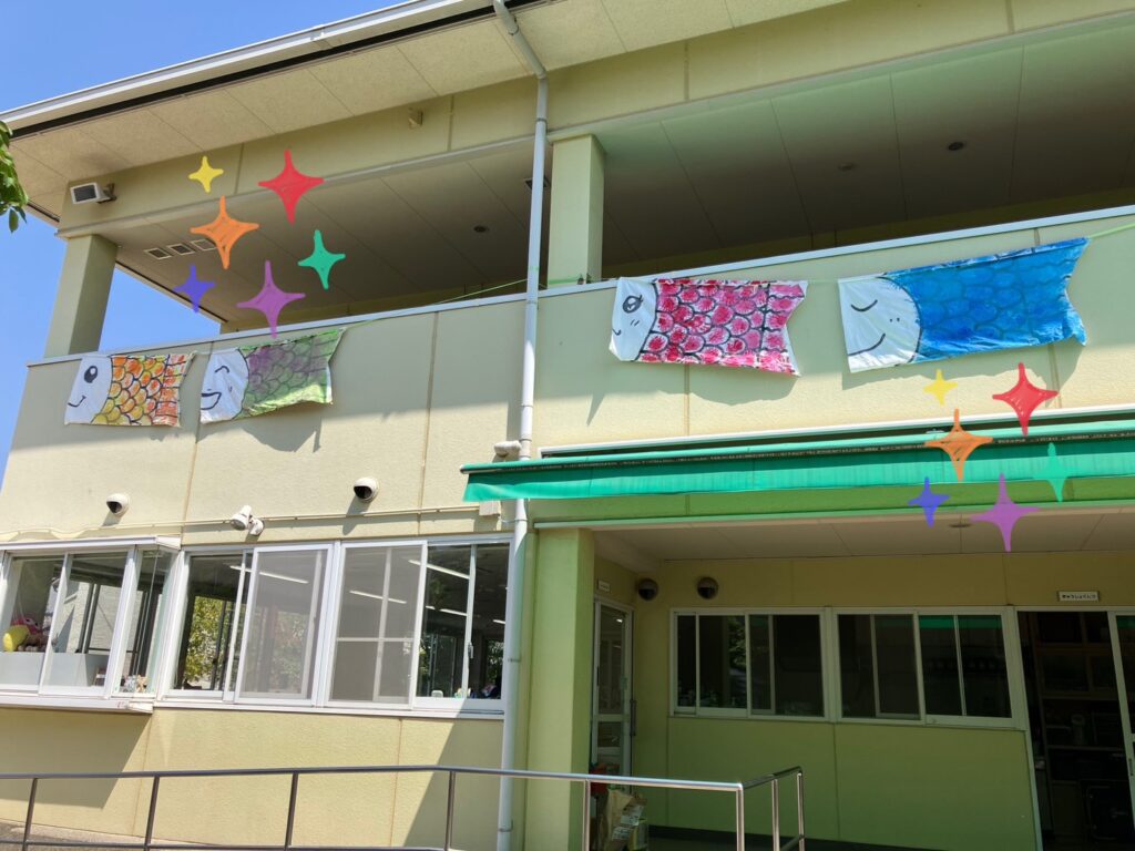 園舎の壁には、幼稚園のお兄さんお姉さん手作りの可愛いこいのぼりも泳いでいました🎏