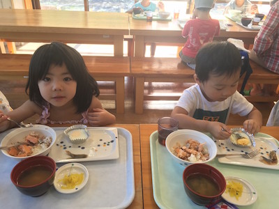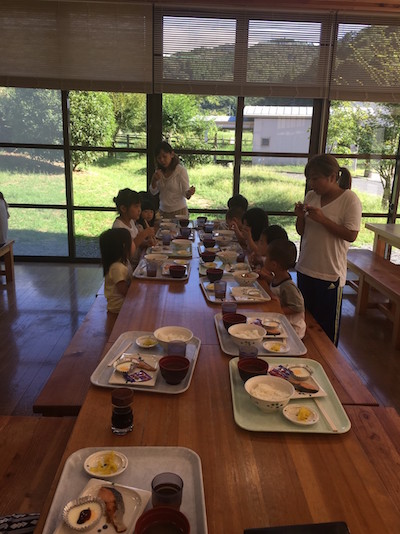 今日はみんな朝7時に起きました! 朝ご飯は食堂の和定食です! みんな朝からご飯いっぱい食べられました!