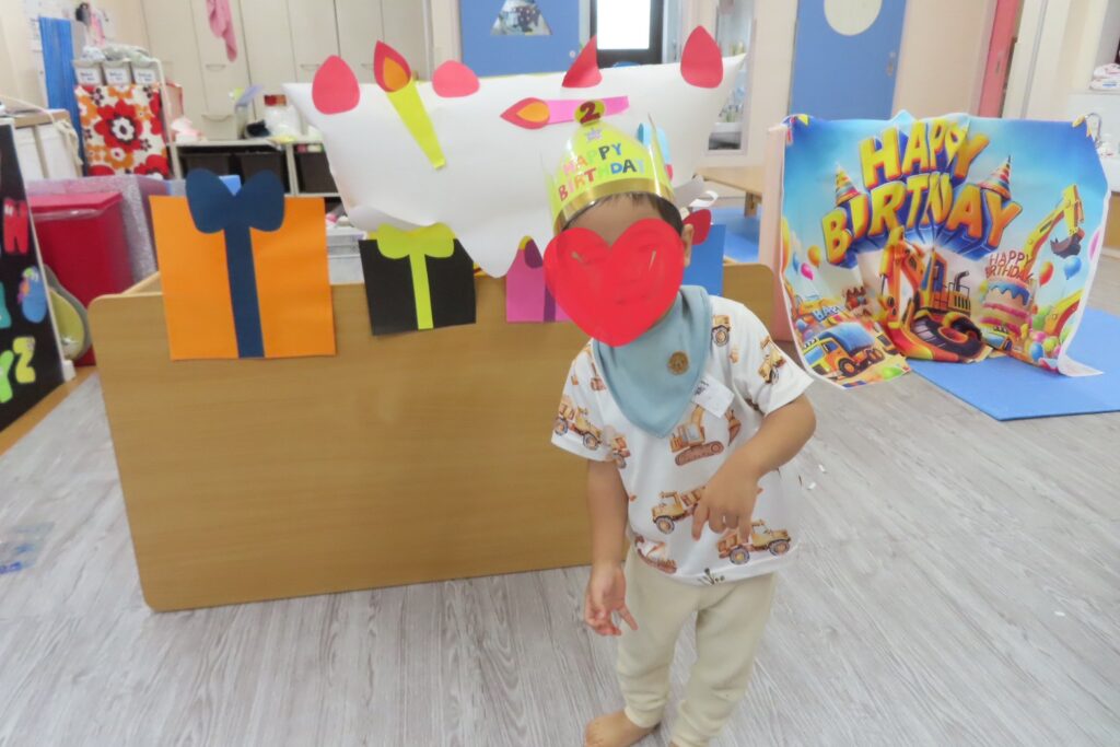 9月のお誕生児は2名でしたが、1名お休みだったため、2歳になるお友だちだけでお祝いしました🎊