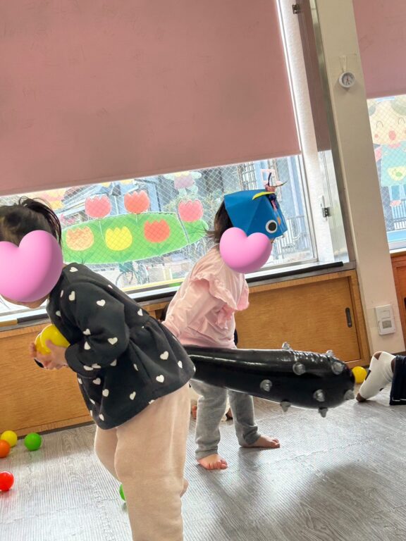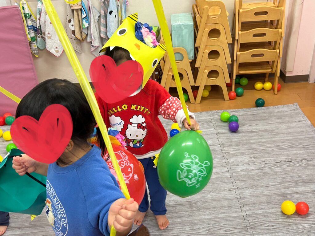 上からぶらさがった風船鬼には『ア〜ンパンチ🤛🏻』『アンキィ〜ック🦵』をしたり、