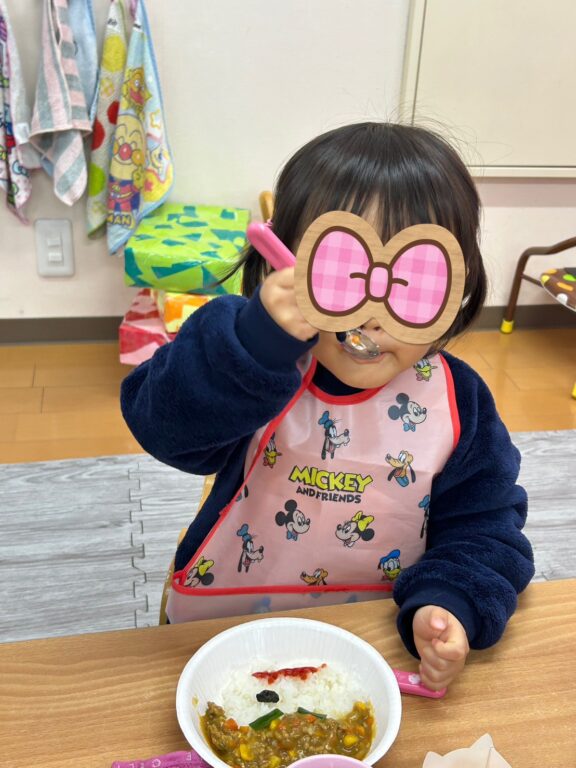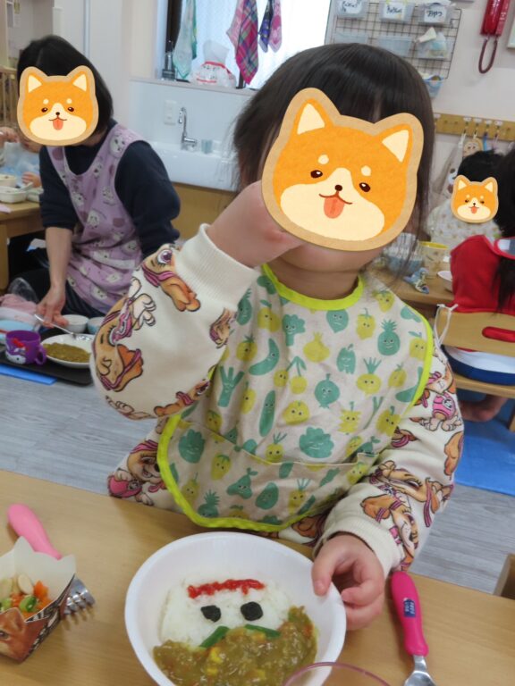 給食も『鬼さんカレー&大豆サラダ&ヨーグルト』と好きな物ばかりのメニューで、よく動いた後なのでパクパクとしっかり食べられましたよ👳‍♀️🍛