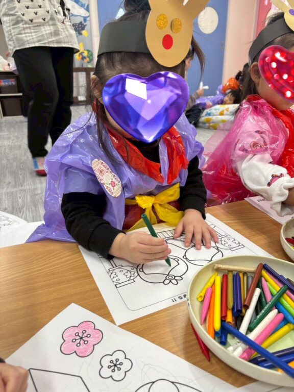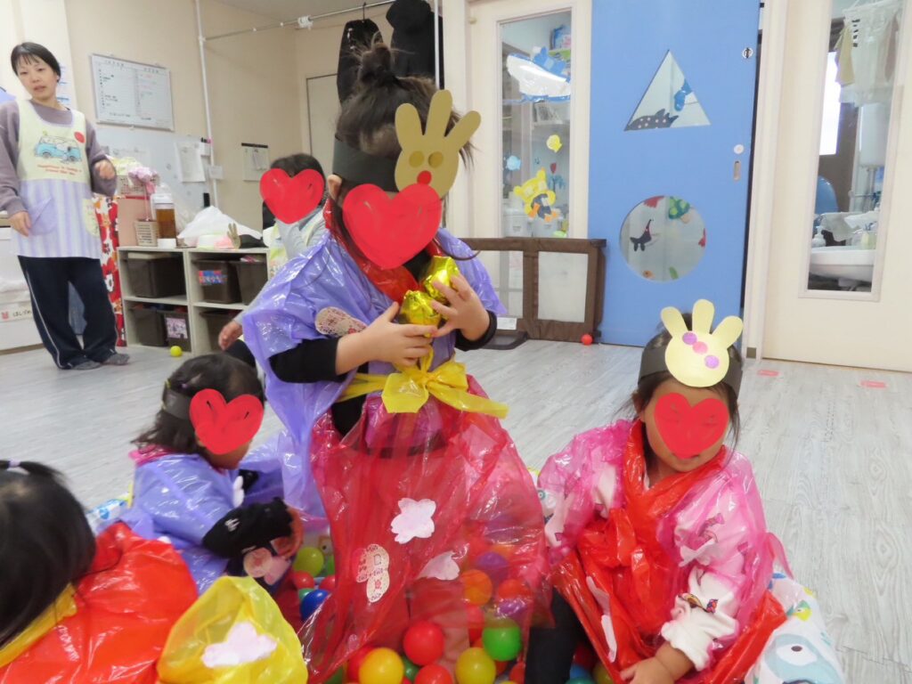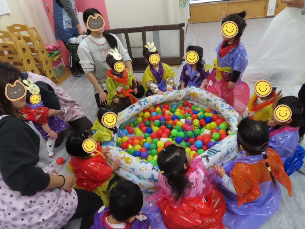 1・2歳児さんは2つに分かれて『ひなあられ運び競走』をしました✨器から落ちない様に気をつけて桜・橘を回ってお友だちに[タッチ✋]ちゃんと次のお友だちに渡して走る事が出来ました🏃おひなさまの【塗り絵】をしたりカラーボールいっぱいの中から【金のひなあられ探し】もしたりととっても楽しむことができました🔴⚪️🟢