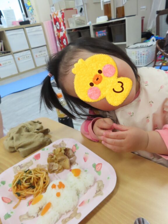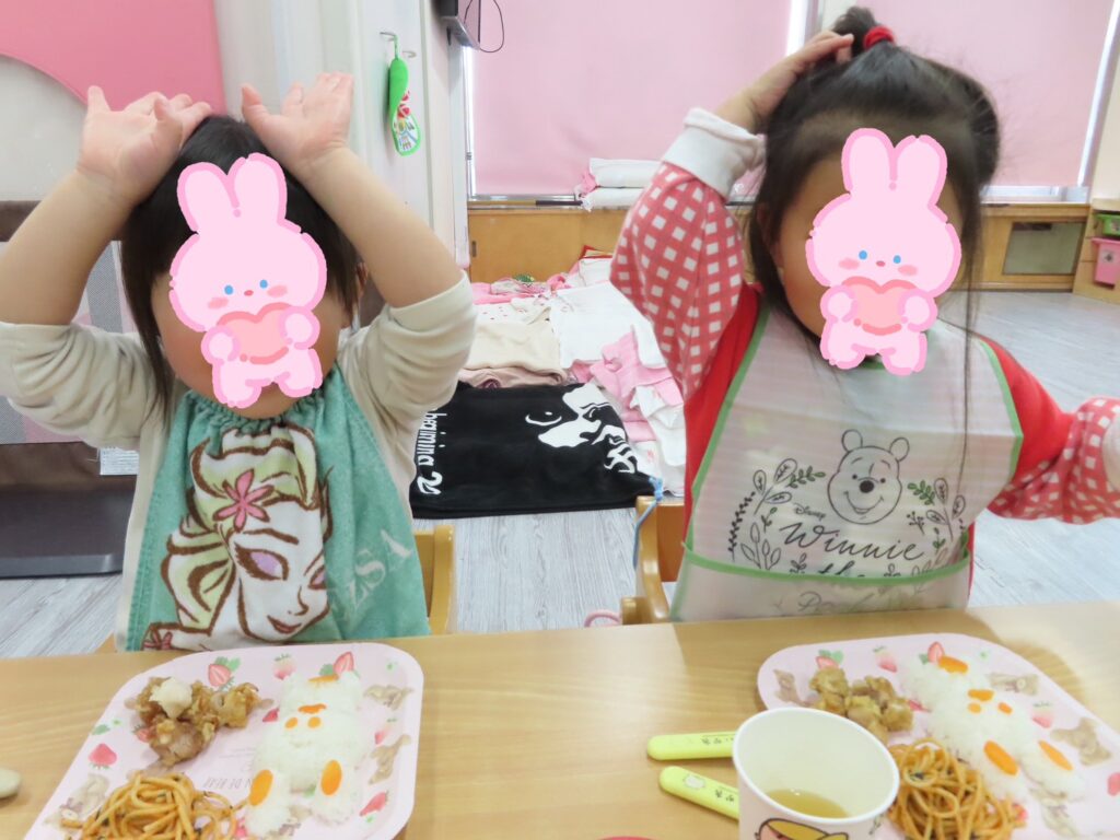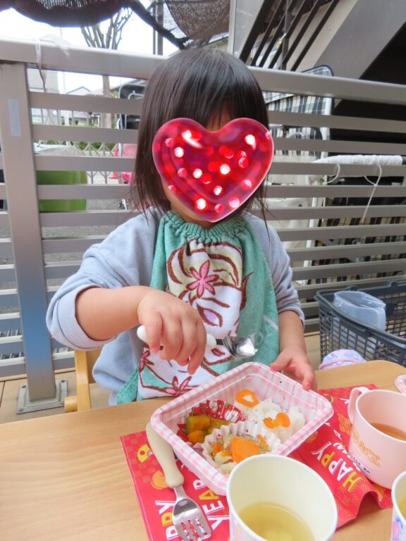 前日にはさくらぐみさんだけでテラスでランチ🍙給食の先生がキティちゃんのお弁当を作って下さりみんなで楽しみましたよ
