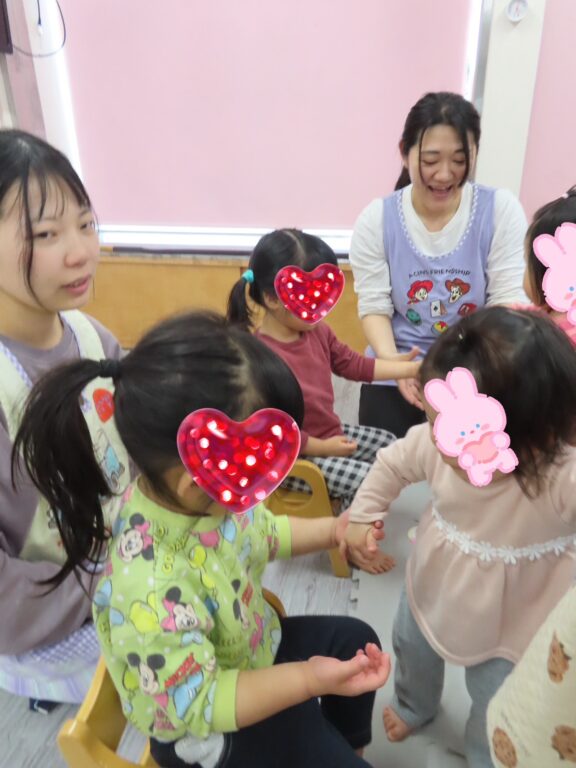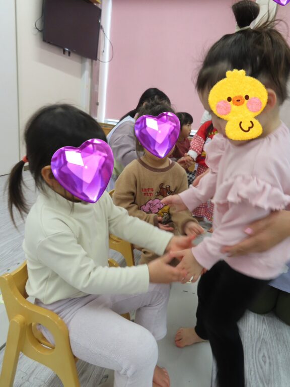 「さくら組さんは卒園して違う園に行っちゃうよ🥺』と伝えていて、『つぼみぐみさんから歌のプレゼントをしよう🎵』と練習開始✨当日さくら組さんの前に立つとめばえ組さんのお友だちも真似っこをして横に並ぶことができました😊みんなで一緒によく歌った『🎶さんぽ🎶』をプレゼントのお歌に選びましたよ😄いつも頼りにしていたさくら組さんの歌声が無くて不安そうでしたが、段々と大きな歌声になりびっくり😳褒められて嬉しそうなめばえ組さんとつぼみ組さんは、お歌の後さくら組のお友だち4人と一人ひとり握手をして名残惜しんでいました🤝🤝🤝