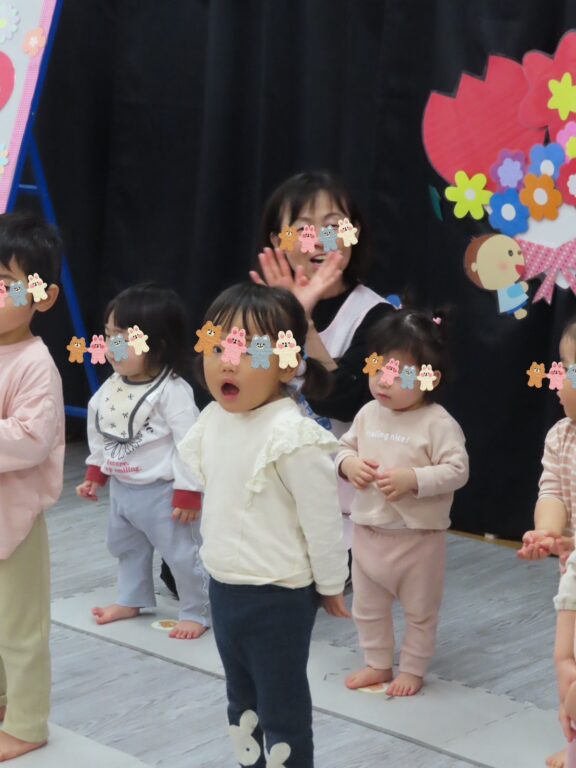 在園児紹介で『さくら組さん🌸』『つぼみ組さん🪷』とお名前を呼ばれると「はぁい🖐️」としっかりお返事してくれましたよ🙋♀️🙋♂️