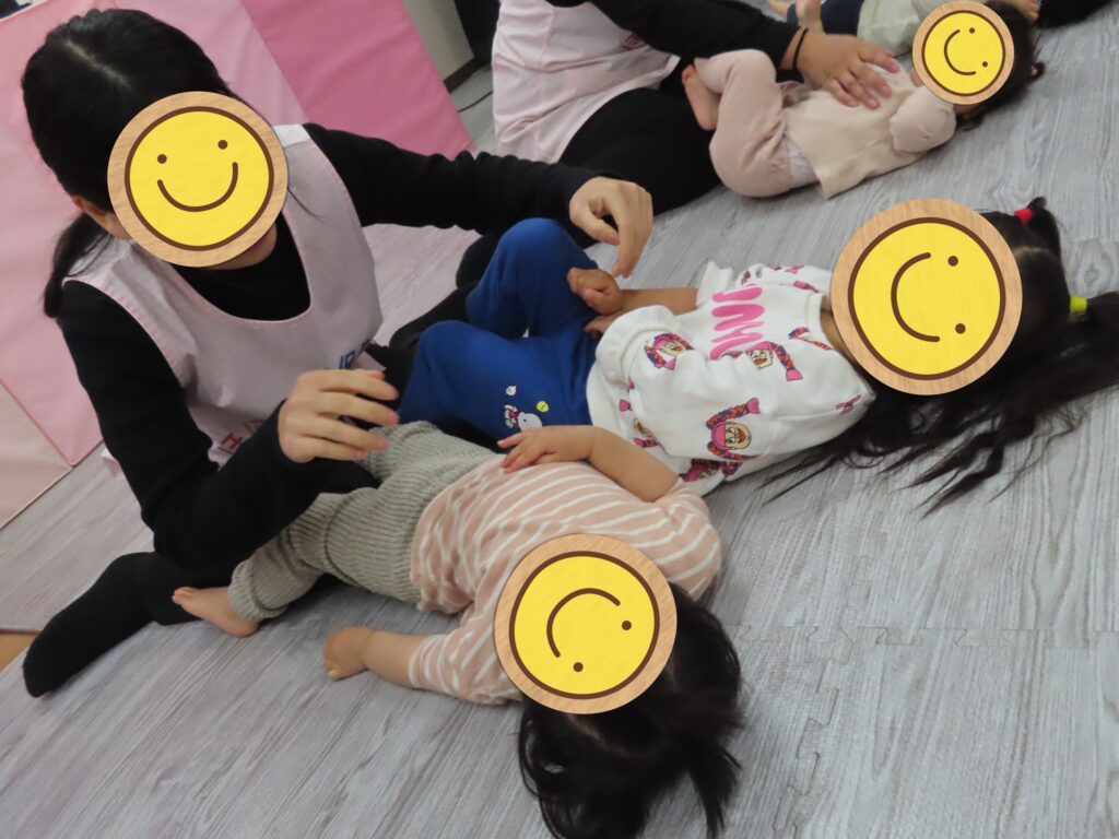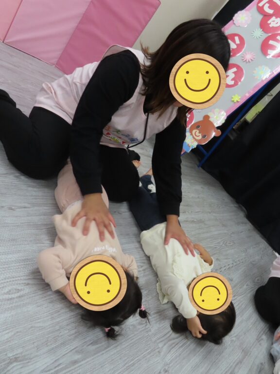 皆で一緒『おいもの天ぷら』の触れ合い遊びをするとくすぐったくて『キャハハハ…🤩』と笑い声が響き、和気藹々とした雰囲気の中楽しむことができました🤗