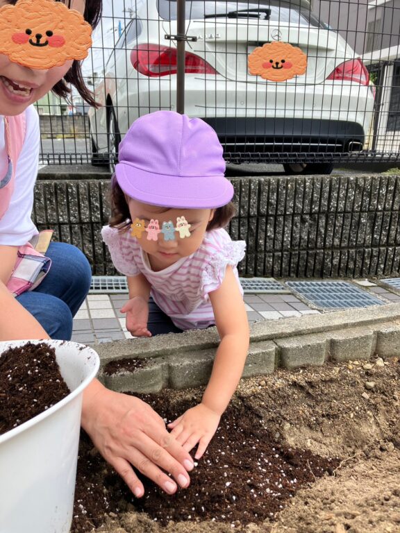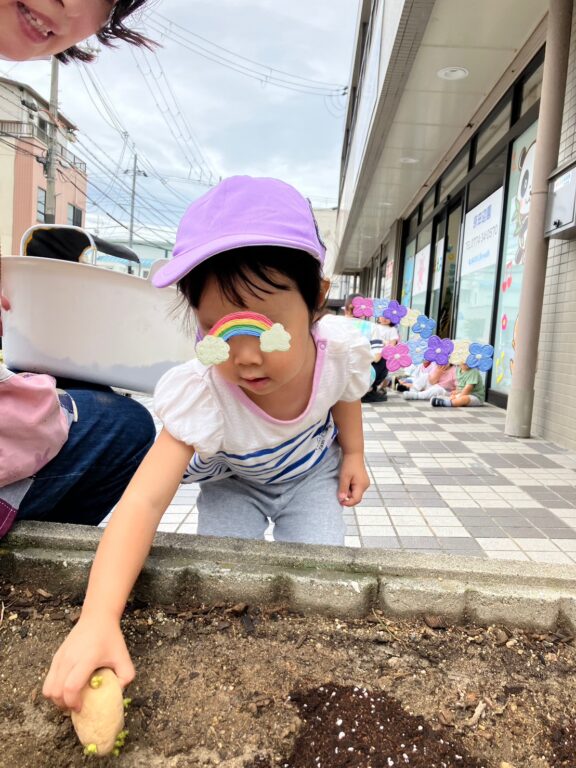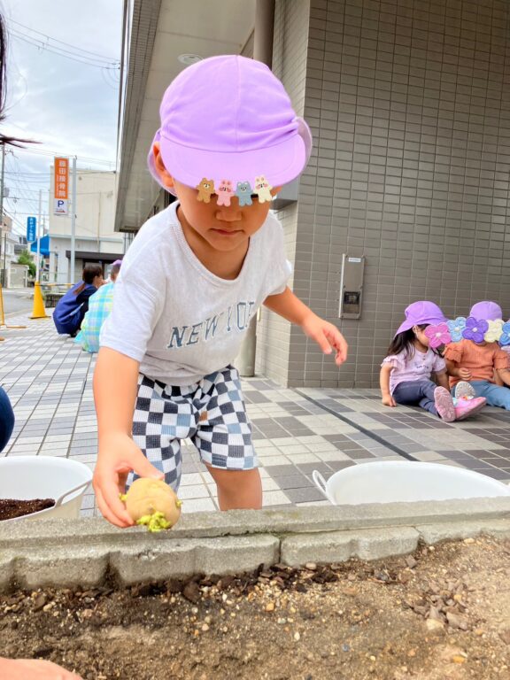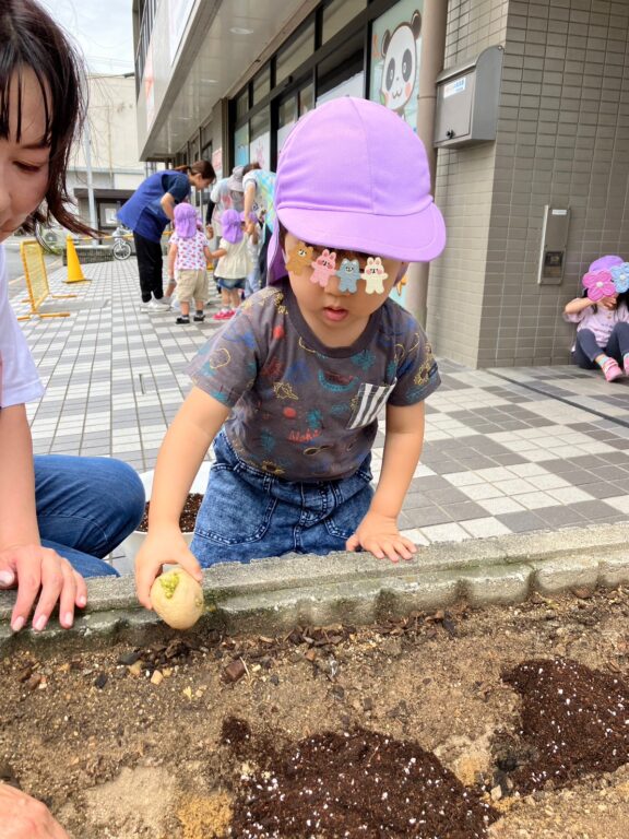 そして最後にはじゃがいも🥔の種芋を、2歳児ぞう組さんが優しい手つきで植え付けてくれました☺️