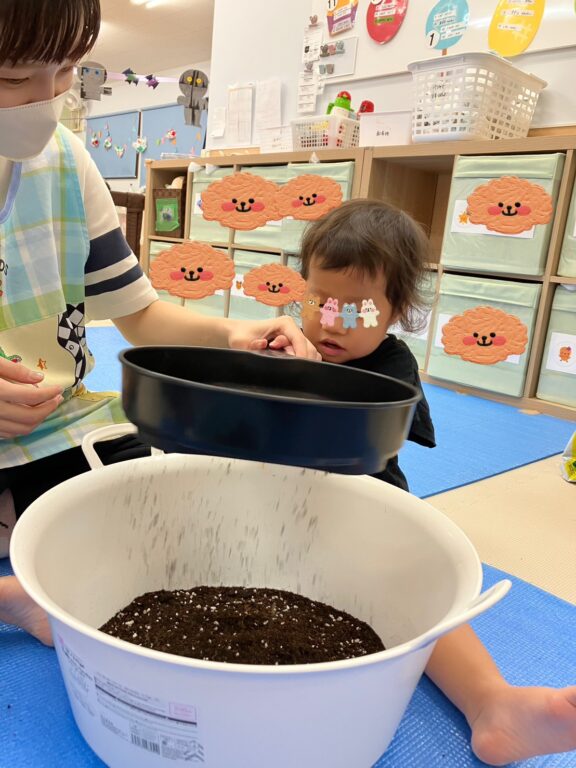 何度も色んな植物を育んでくれている、京田辺園の畑、たくさん栄養のある土を新しく入れてあげよう❗️と、今日は子ども達が楽しく頑張ってくれました🌟