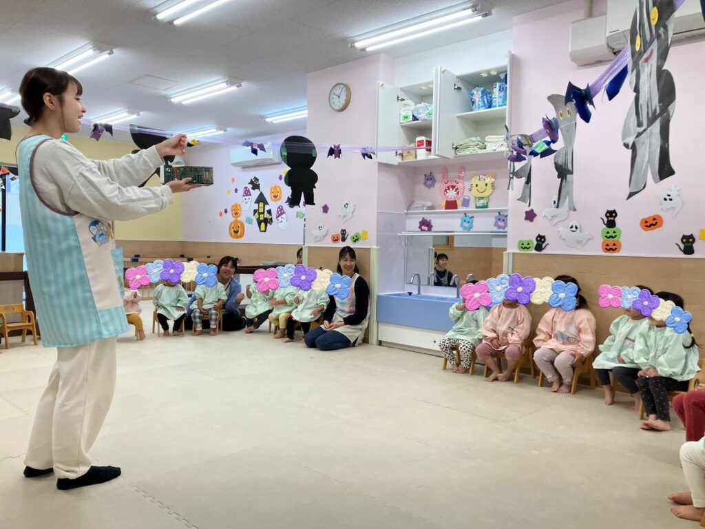 保育室ではどんぐりさんにちなんだ、歌や絵本🤩季節も進み、少し肌寒く感じるようになりました💨
