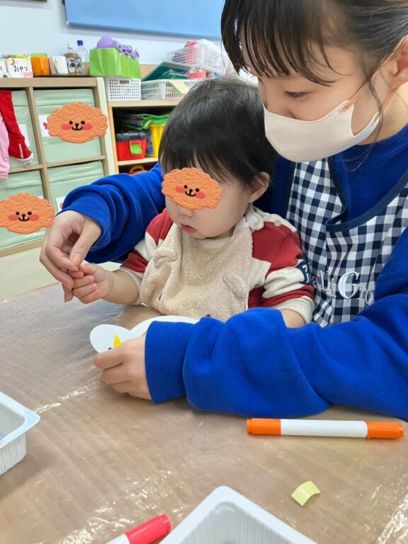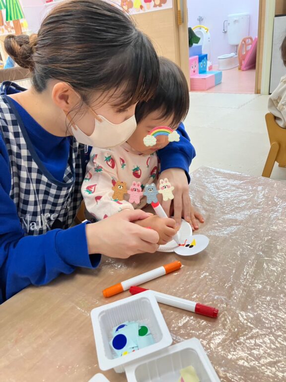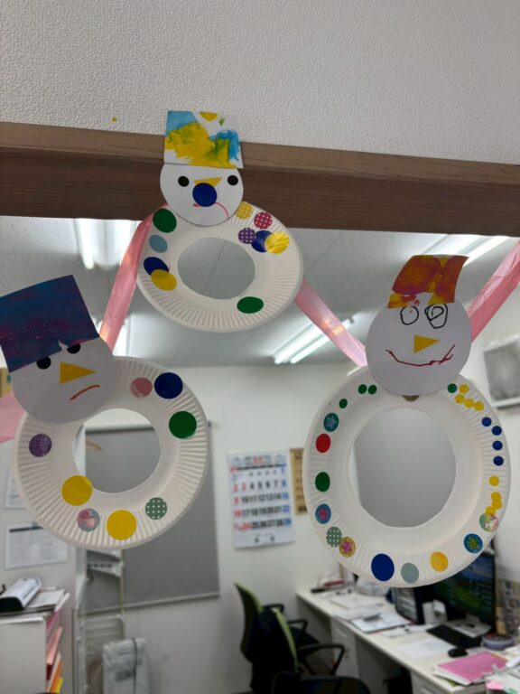 シールを貼ったり、ニッコリ雪だるまさんのお顔を描いたり⛄️