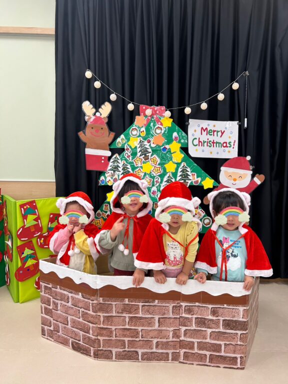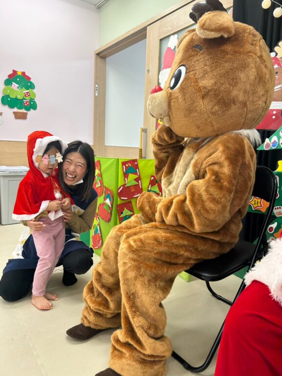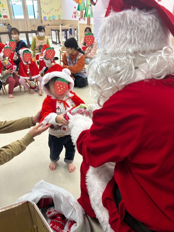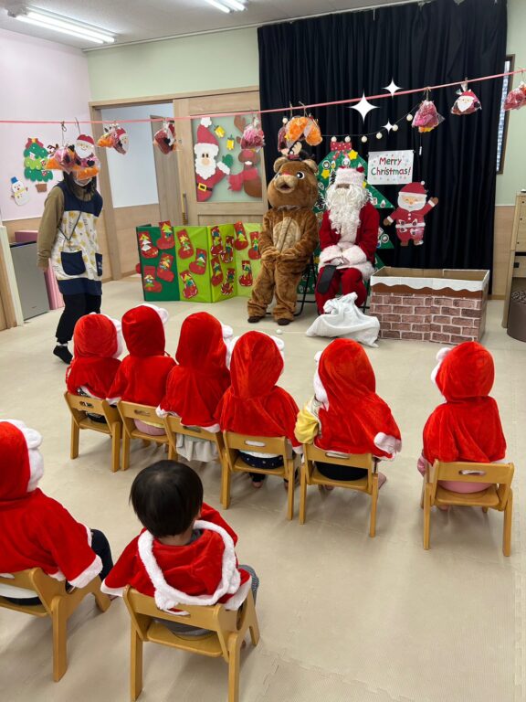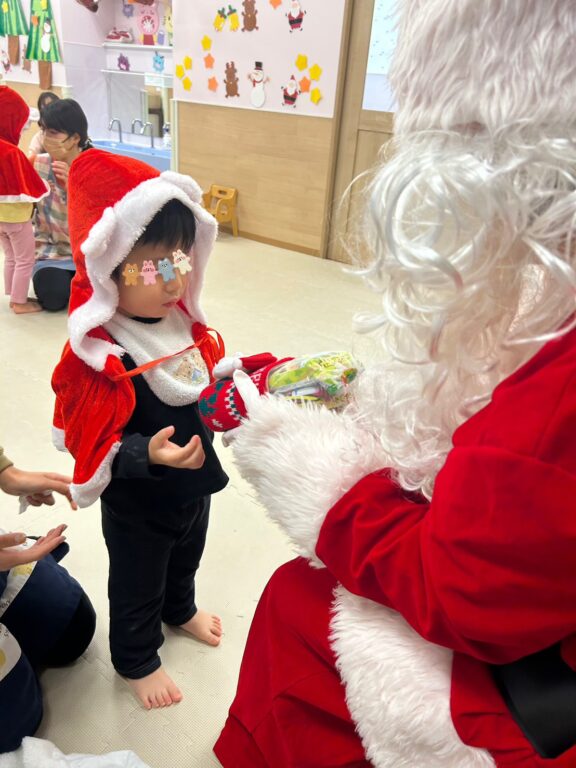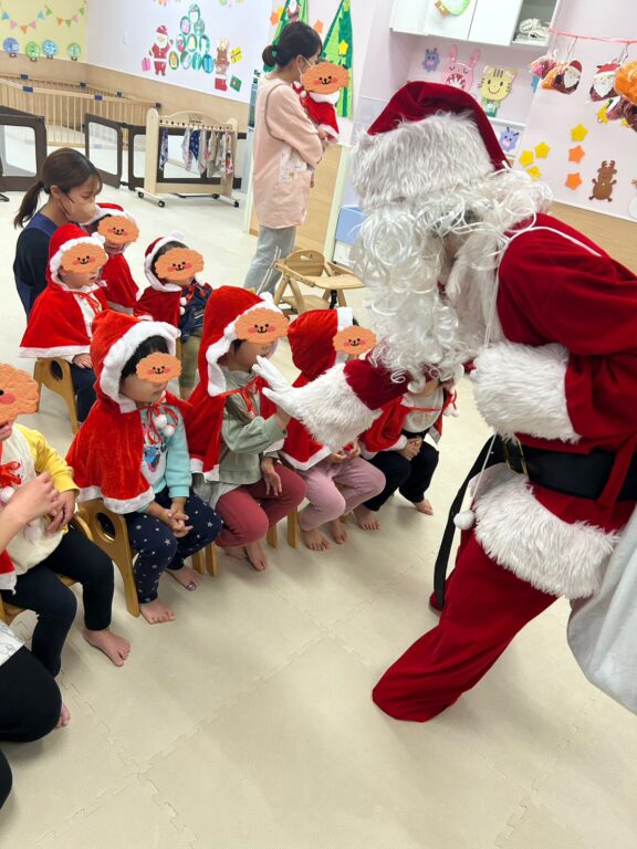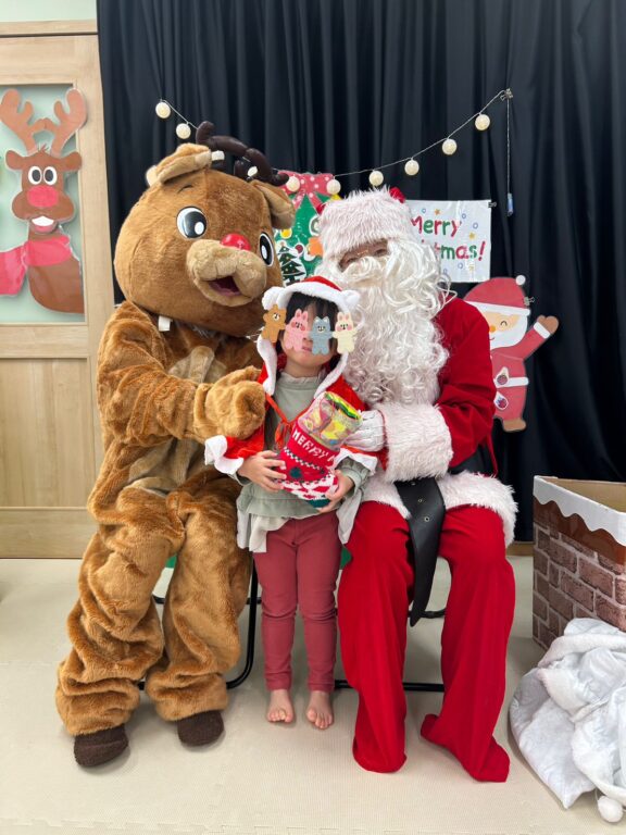 サンタさんとトナカイさんの訪問に、初めは目がまんまる👀な子ども達でしたが、ハイタッチや質問コーナーを終えた頃には、「もういっかいサンタさんとタッチしたーい😆」とすっかり仲良しになれた様子🎅可愛いブーツ型のプレゼントも貰えました🌟