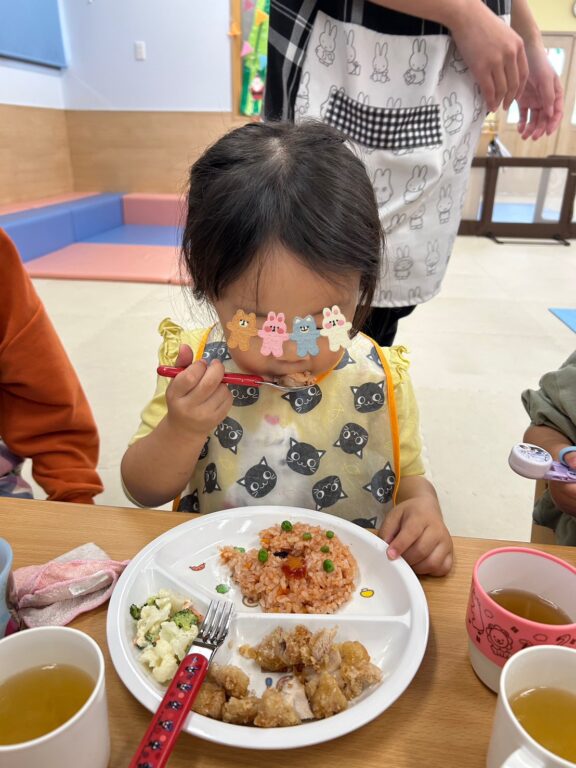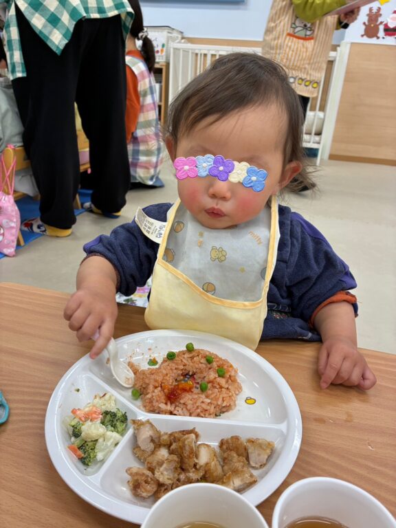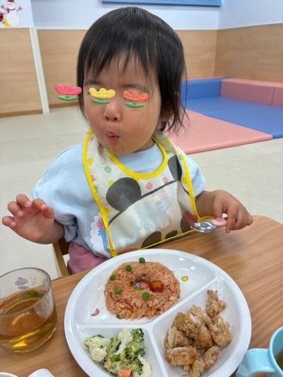 給食はクリスマス特別給食🎄皆んな大好き唐揚げ🍗が😍たくさんおかわり出来ました❣️