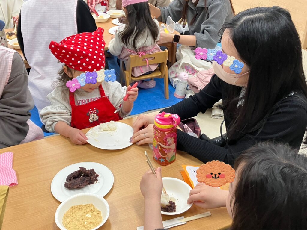 園長先生からのお話でもあったように、今日の親子クッキングをきっかけに、日常の中に食を通じて、食育を感じていただけるきっかけになっていただければ😊そしてお配りしたレシピカードで、またゆっくりとお家でおはぎ作りを再チャレンジしていただけると嬉しいです🎀