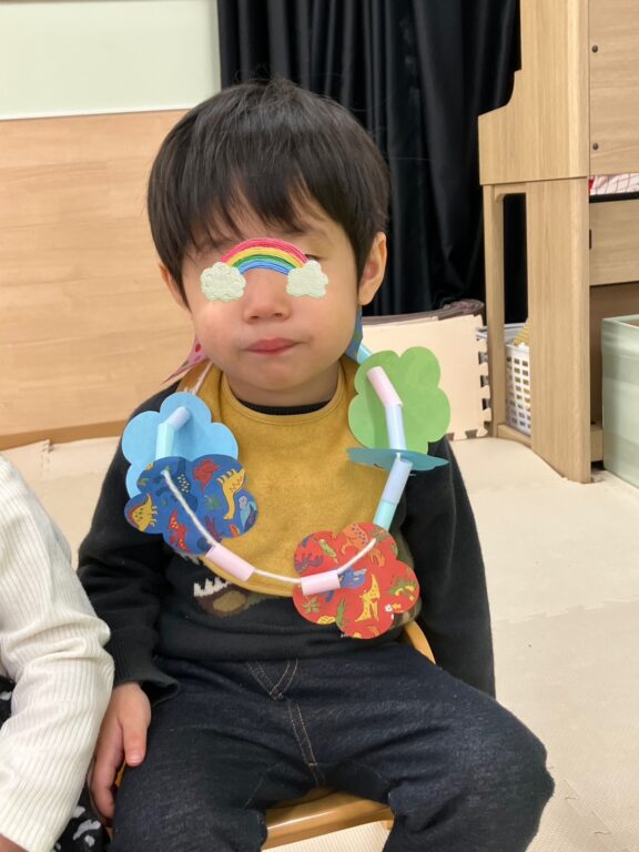 首にかけてもらい、少し恥ずかしそうに、でも満面の笑みのぞうぐみさん😉