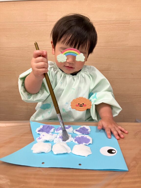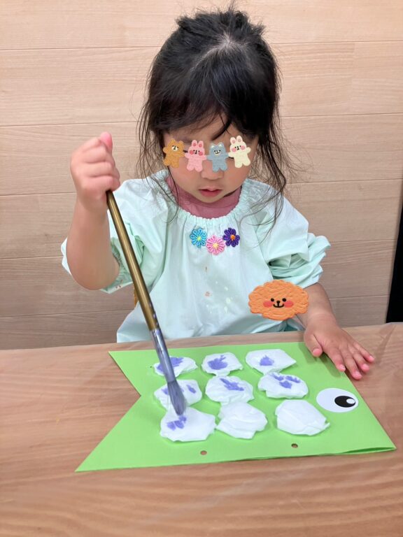 丁寧に丁寧に子どもたちに、筆の使い方や絵の具の扱い方を伝えながら、製作を楽しんで行きます😉