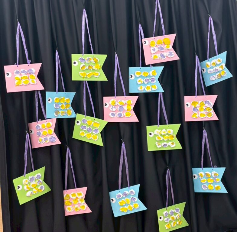 出来上がった鯉のぼりバッグは、先生達がお部屋に飾り付け😍