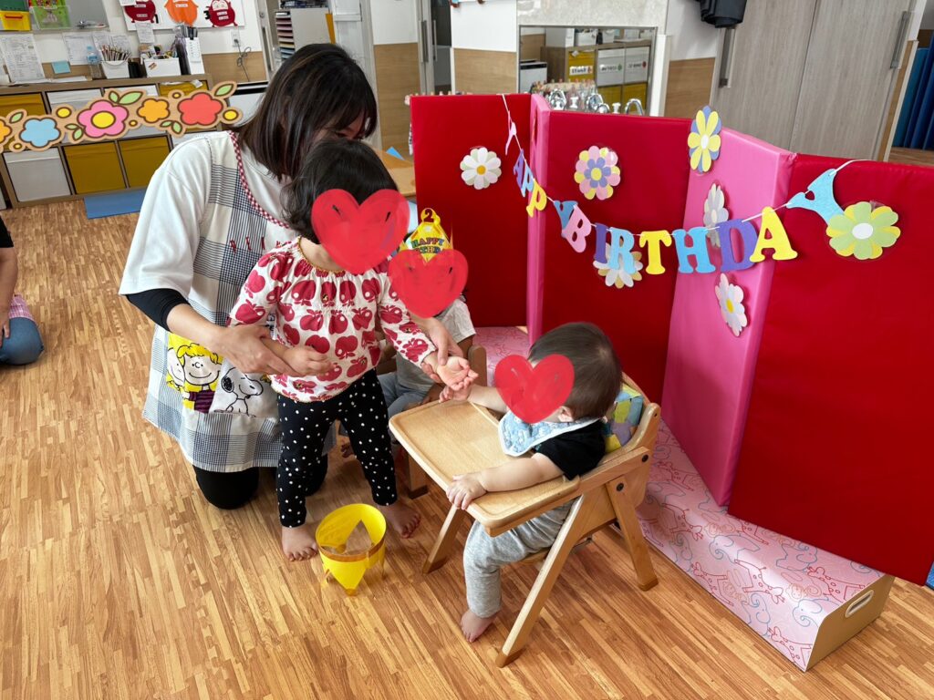 入園して早1か月😊少しずつ園での生活にも慣れてきた3人のお友だちをみんなでお祝いしました✨