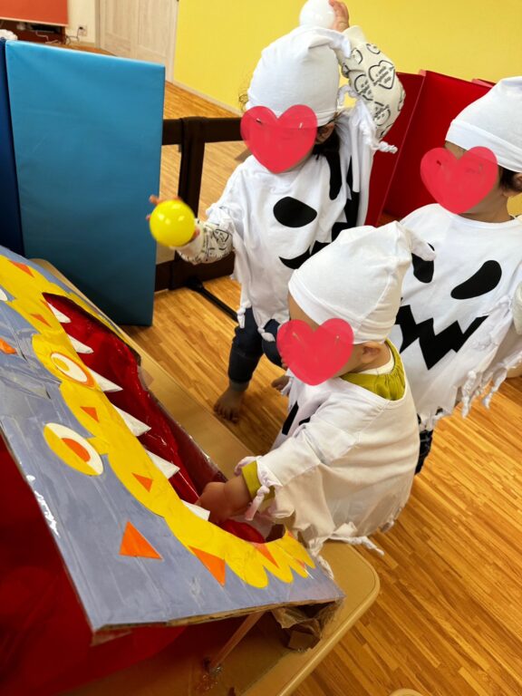 大好きなカラーボールを使った的当ては大人気でオバケさんもボールでお腹いっぱいになっちゃいましたよ😆