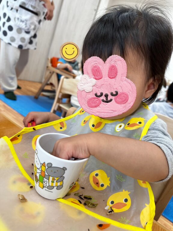 小さいお友だちも、じっと見つめたり、夢中で指を動かしたり、感触に笑顔を見せたりと、きのこの感触や匂いを全身で楽しんでいました🌼