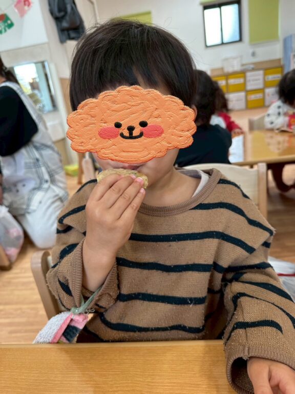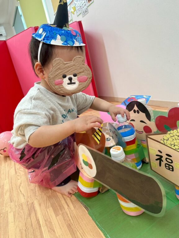 鏡をのぞき込んで自分の姿を見たり、「鬼さん❣️」「赤鬼🩷」と嬉しそうに指さしたりと、準備の時間からわくわくしていた子どもたち😊