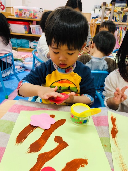 だんだんと暖かくなり公園にも梅の花が咲き始め、子どもたちも梅の木の製作をしました😊🎨筆で木を描き🖌お花の形の画用紙をのりで貼ったりしながら作りました🎨