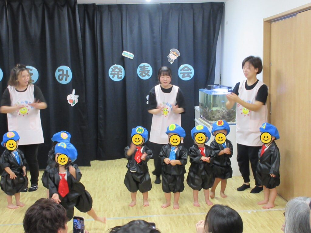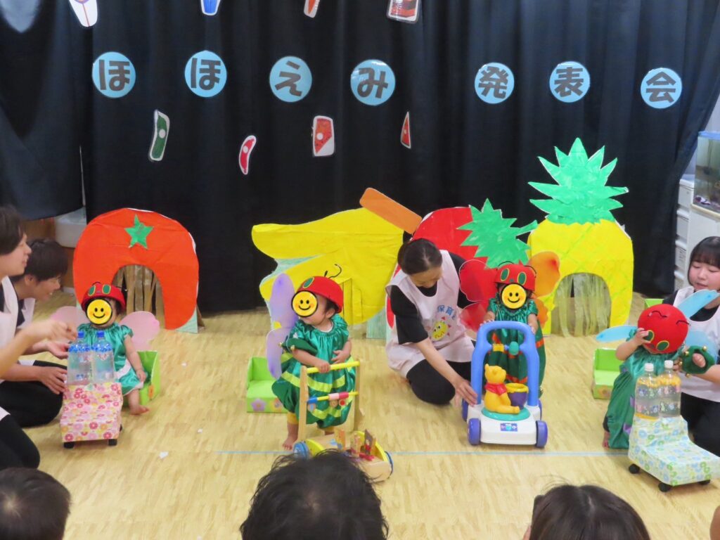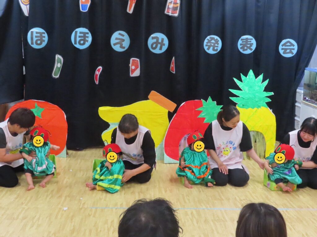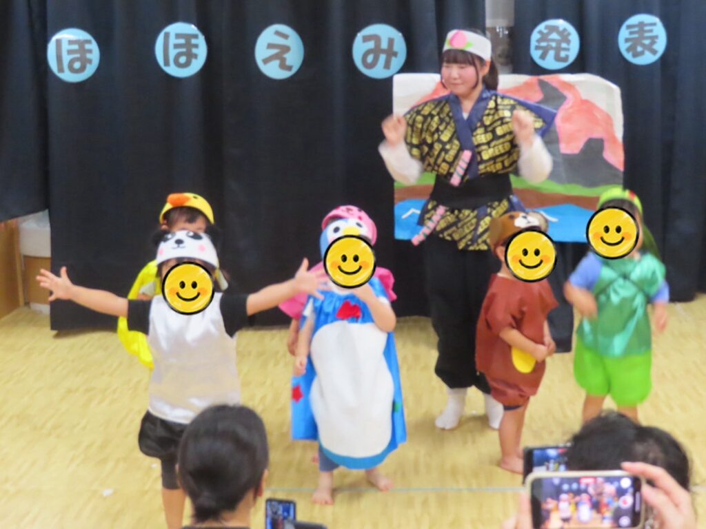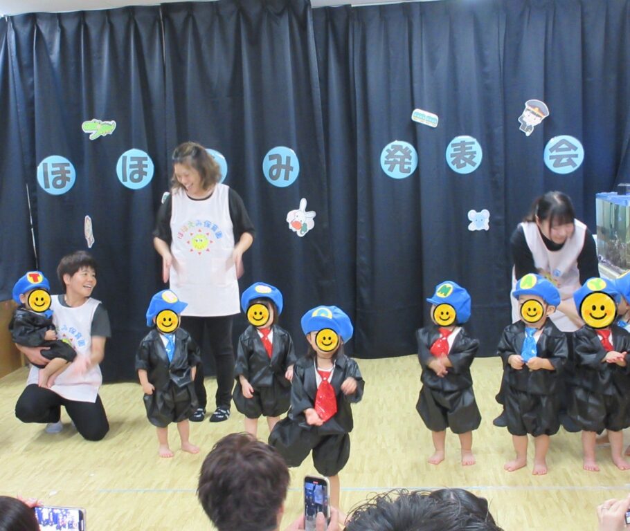 子どもたちが協力して、悪者をやっつけている場面や、セリフを言う場面もあり、ほほえみ保育園での最後の発表会として、成長を見せてくれまた‼️