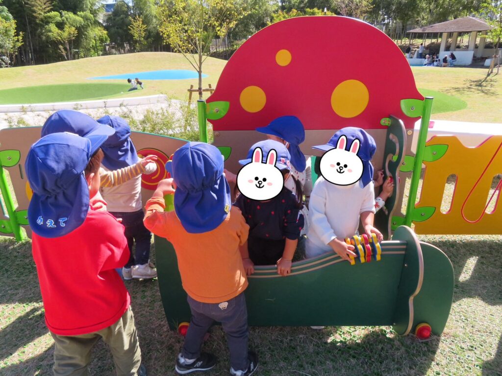 食事が終わった子から、公園で遊びます🛝 新しくなった公園だったので、皆んなどれでも遊ぼうかな?と目移りするほどでした😆 芝の坂をお尻で滑っては、登ってとくり返し楽しみました🌟 楽しい時間はあっという間で、もっと遊びたーいと言うほどでしたので、またお散歩で行きたいと思います☀️
