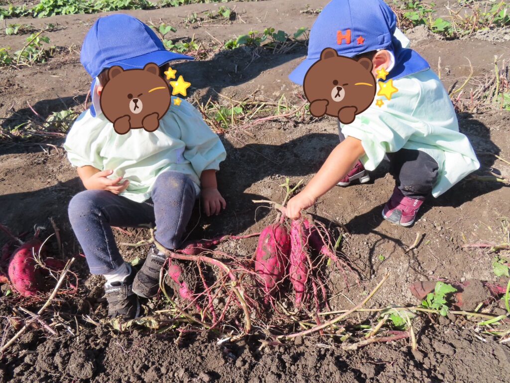 10月は秋の遠足🚌 みかん組もも組は、園バスに乗って、お芋掘りに行きました🍠