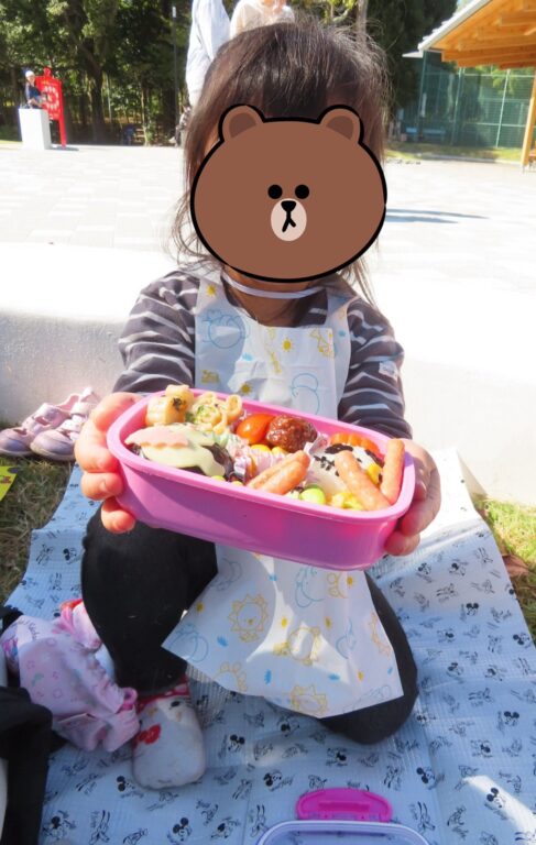 長岡公園に着くと、お弁当Time🍙 お弁当の歌を歌って『いただきまーす🎵』