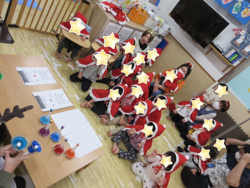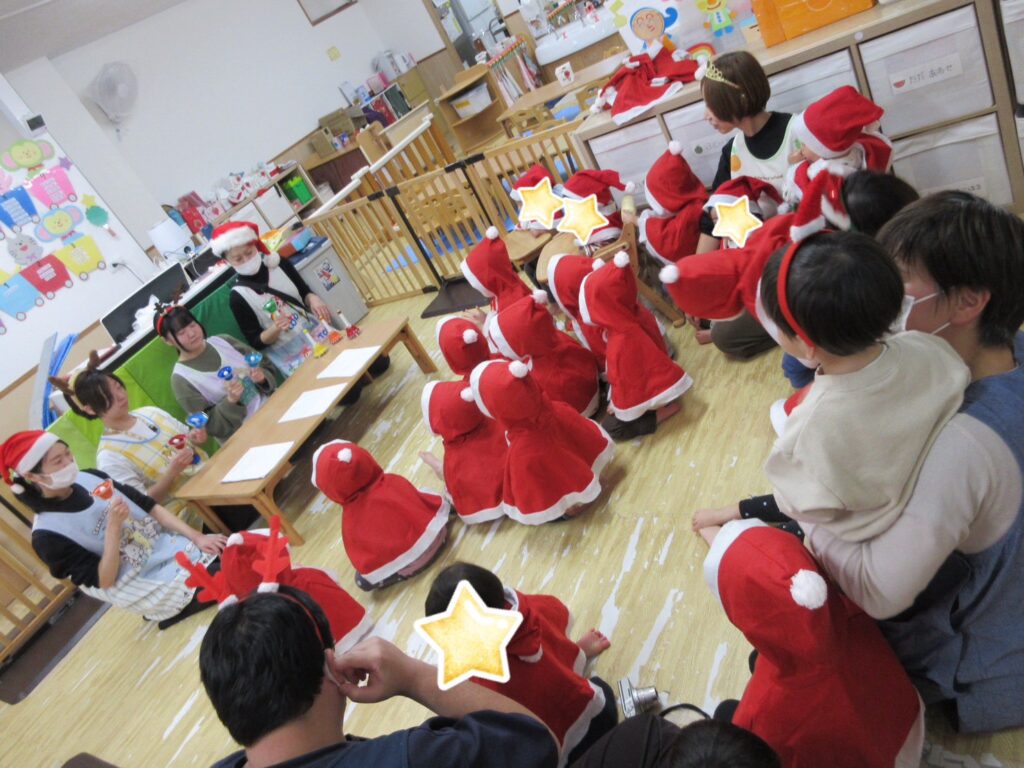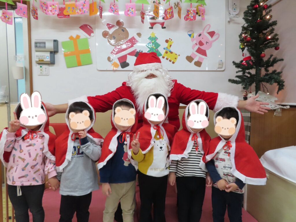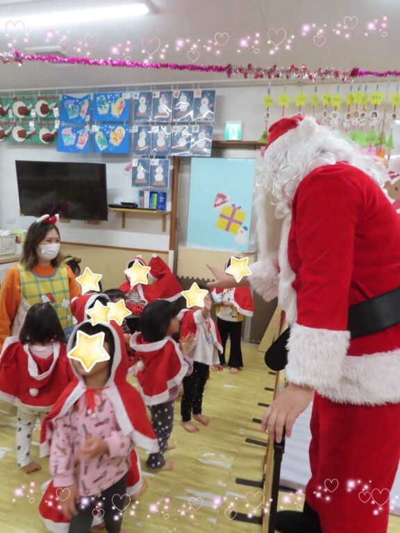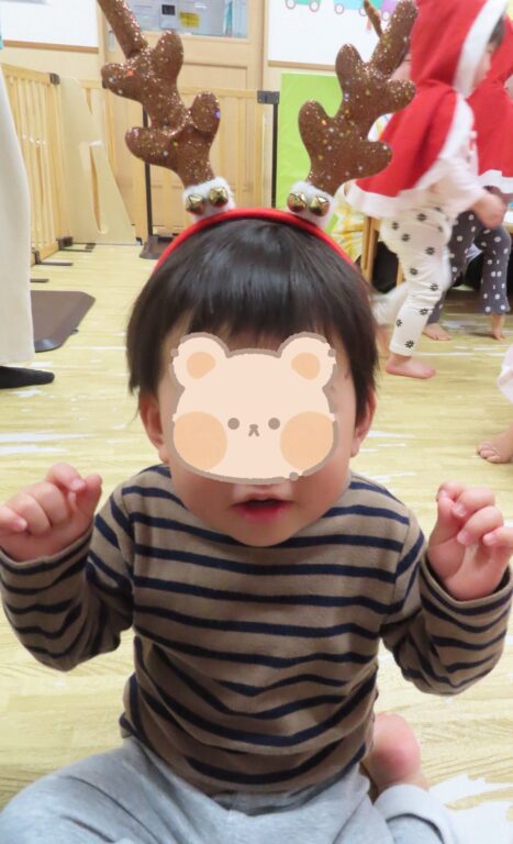 当日は、サンタさんの衣装を着て、ちびっ子サンタに変身🩷 先生たちも、カチューシャを付けたり、帽子をかぶってクリスマス気分を盛り上げました✨