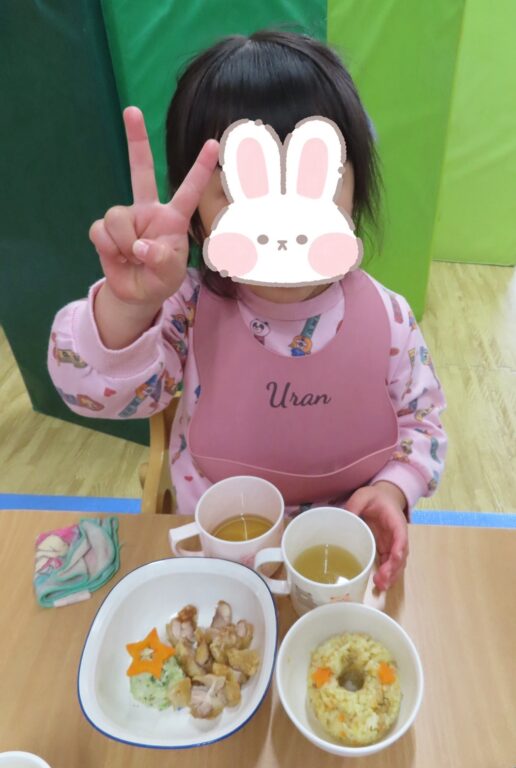 サンタさんやトナカイさんと楽しい時間を過ごした後は、クリスマスメニューの行事食🍴