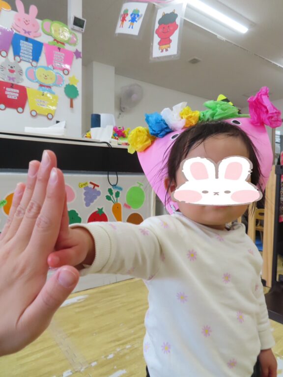 『おにこわいーー』と言う子も居ましたが、『やさしい鬼さんやで!』『〇〇ちゃんが、まもってあげる!』と頼もしい事を言ってくれる子も、居ました🩷