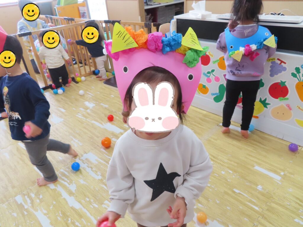 2月3日節分👹 皆んなで豆(ボール)まきをしました‼️ 絵本を読んで節分のお話を聞いて、『豆まき』の歌を歌いました🎵