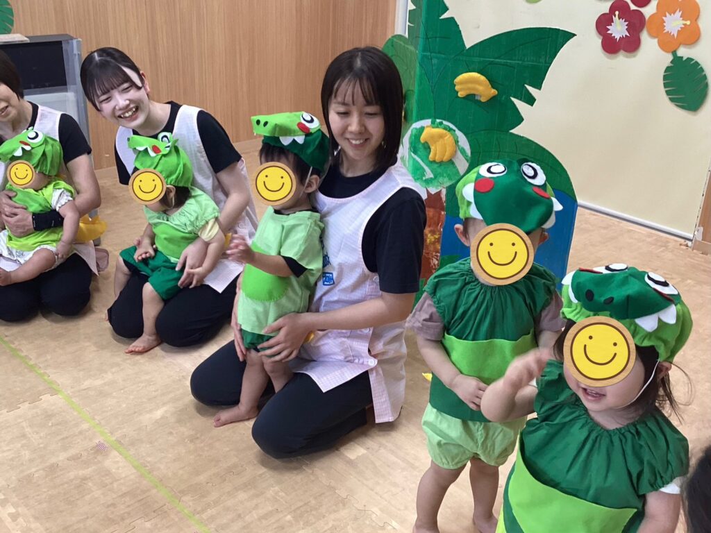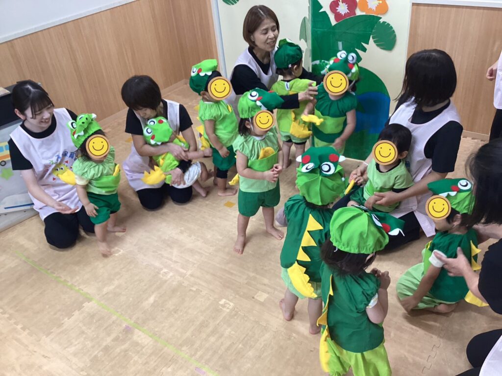 にじ組さんの劇ごっこでは可愛いワニさん🐊に変身しました🌈ほし組のお友だちも赤ちゃんワニさんになって一緒に登場してくれましたよ⭐️