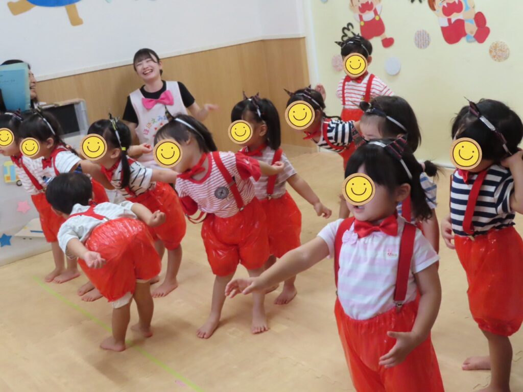 前月の体操の曲で、毎朝踊っていただけあって曲がかかるとニコニコしながら踊る子も😆