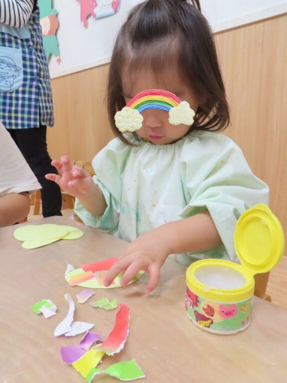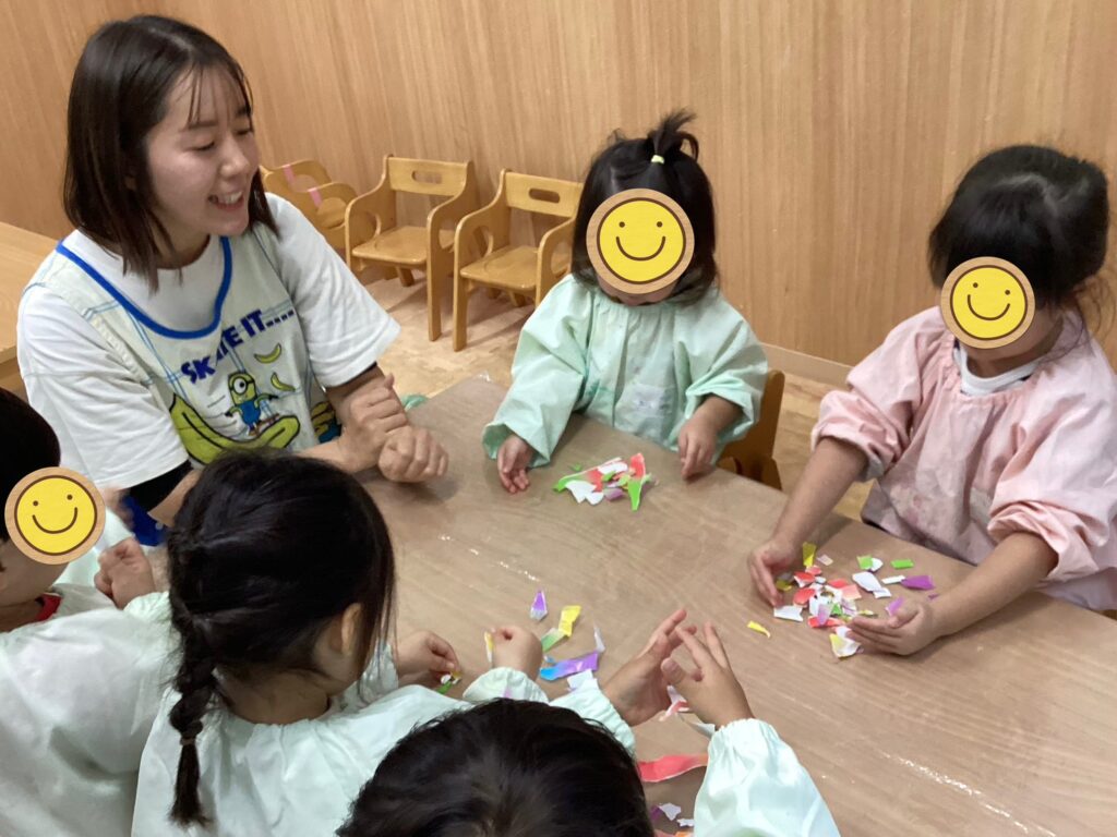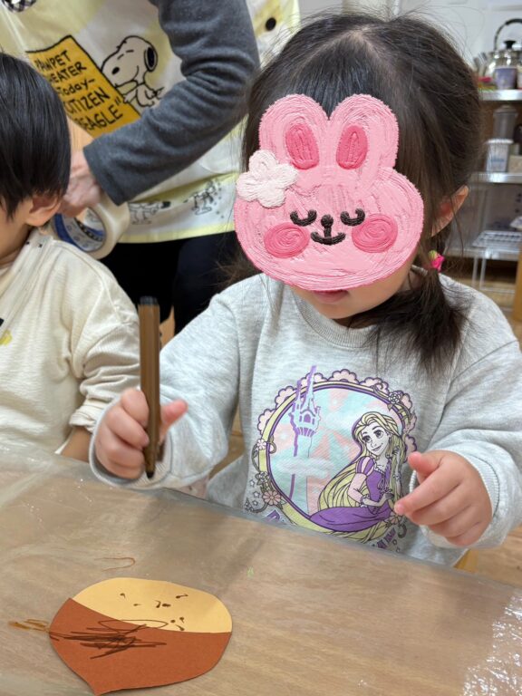 みんなでお花紙を袋につめたり、折り紙をちぎって貼ったり、お絵描きしたりして、秋の味覚をたくさん作りましたよ🎨