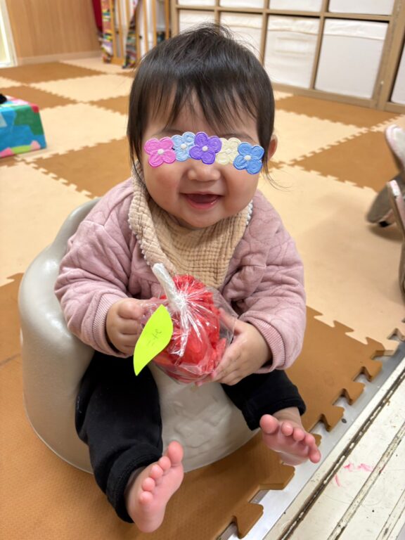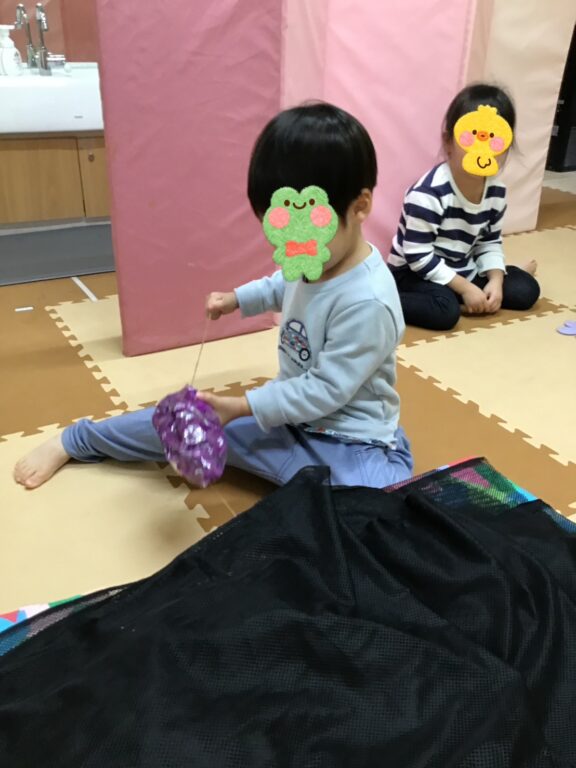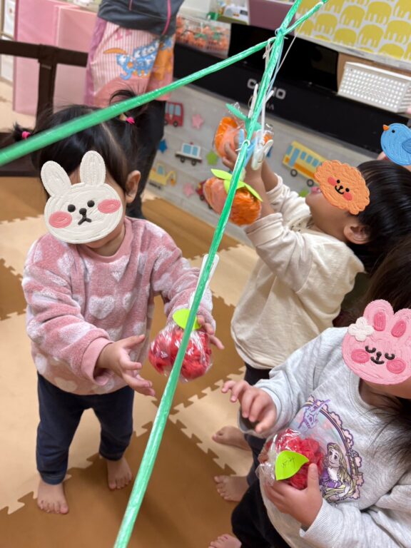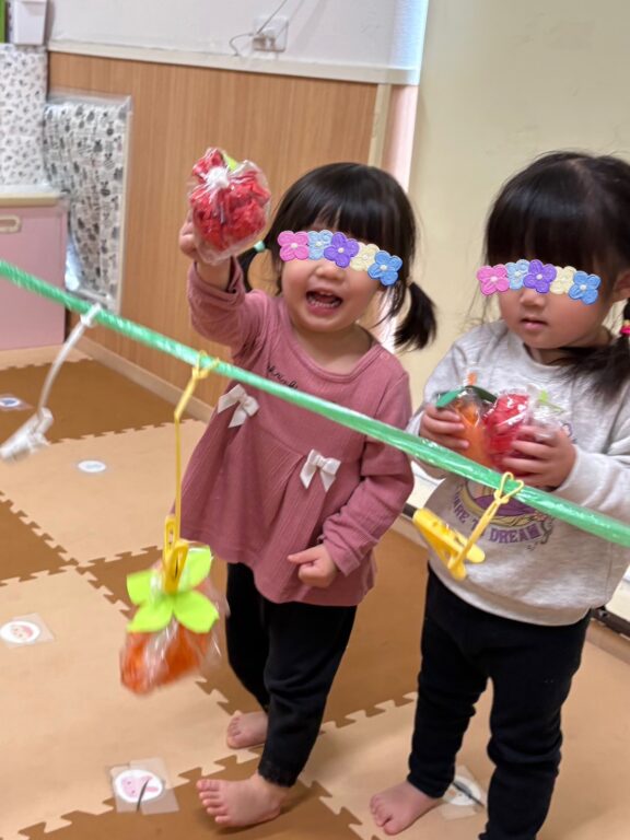 子どもたちは「どれにしようかな〜?」と目を輝かせながらそっとつまんだり、大胆にゆすって落とそうとしたりとっても楽しそう🤣