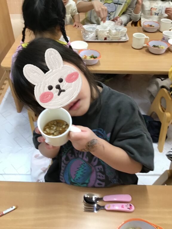 給食でお味噌汁が出てくると、「おかわり❣️」という声がたくさん聞こえ、自分たちがお手伝いしたお味噌汁を嬉しそうに味わっていましたよ🍲✨