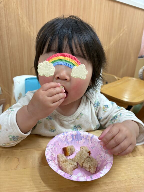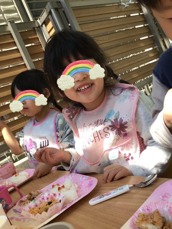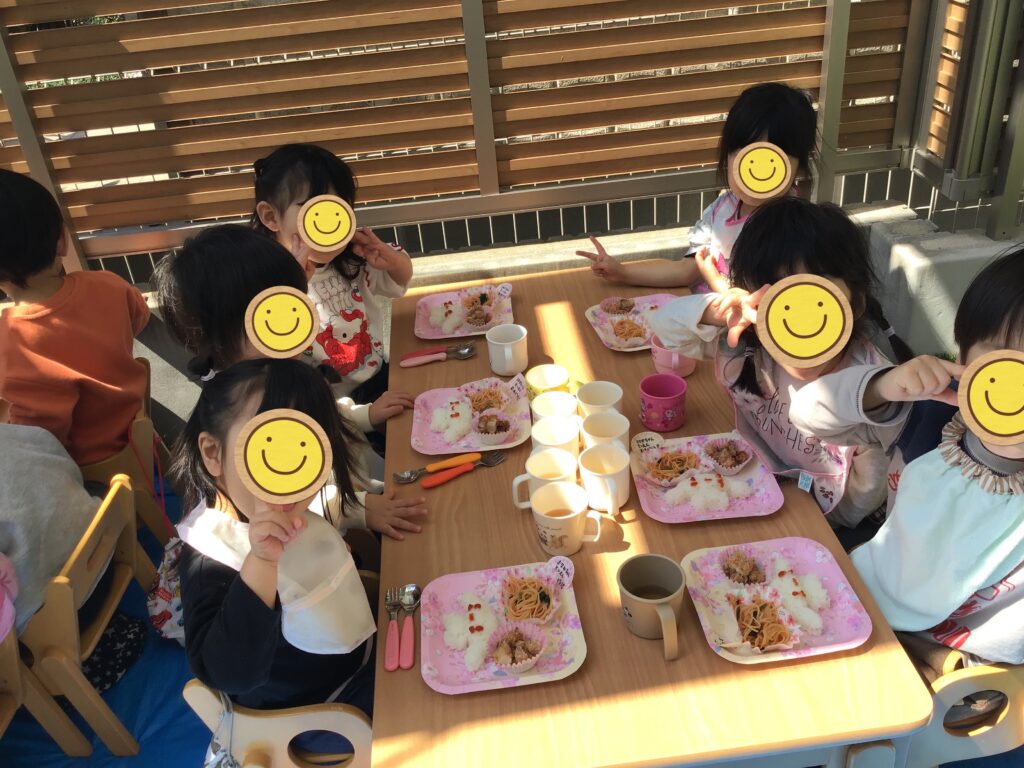 さらにこの日は、卒園児さんだけで園庭に出て卒園お祝いメニューの給食を食べる特別な時間もあり、開放的な雰囲気の中で、楽しそうに過ごしていましたよ🍀