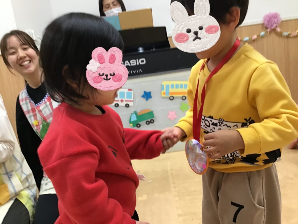 在園児さんからは、いつも優しく関わってくれたそら組のお兄さん・お姉さんへ「ありがとう」の気持ちを込めて、一人ひとりにメダルをプレゼントしました🎖️