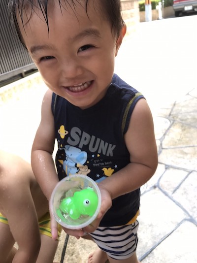 暑さが本格的になってきたので、園の裏で水遊びを楽しむ日が増えてきました♩