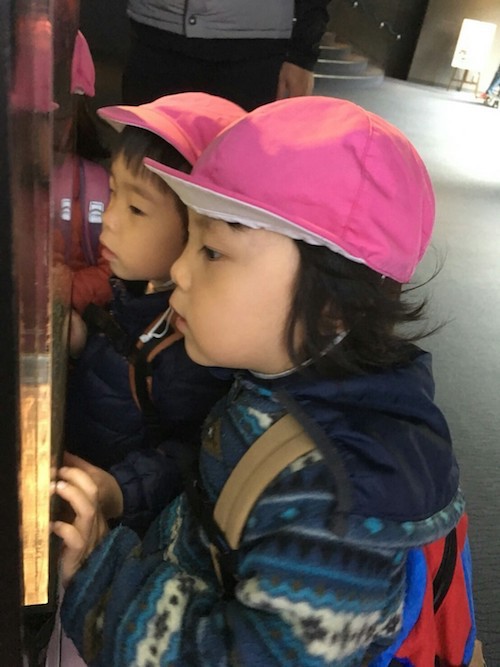 お魚を捕まえようとガラスを一生懸命さわる子👐