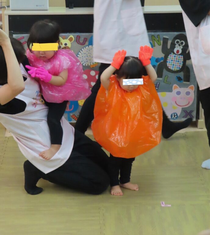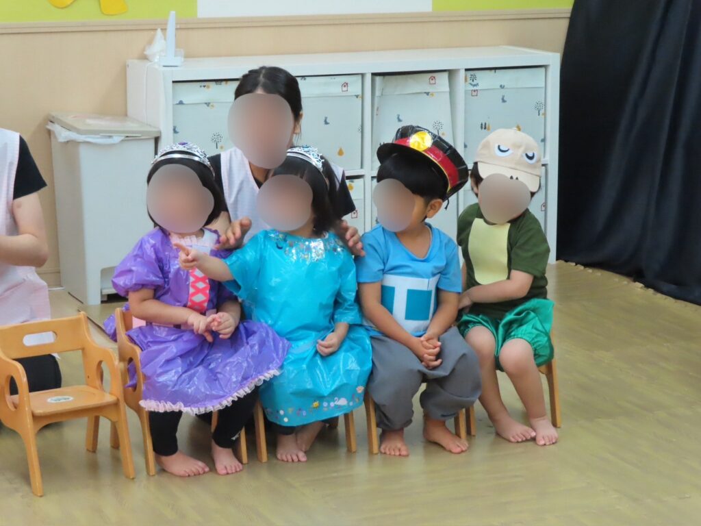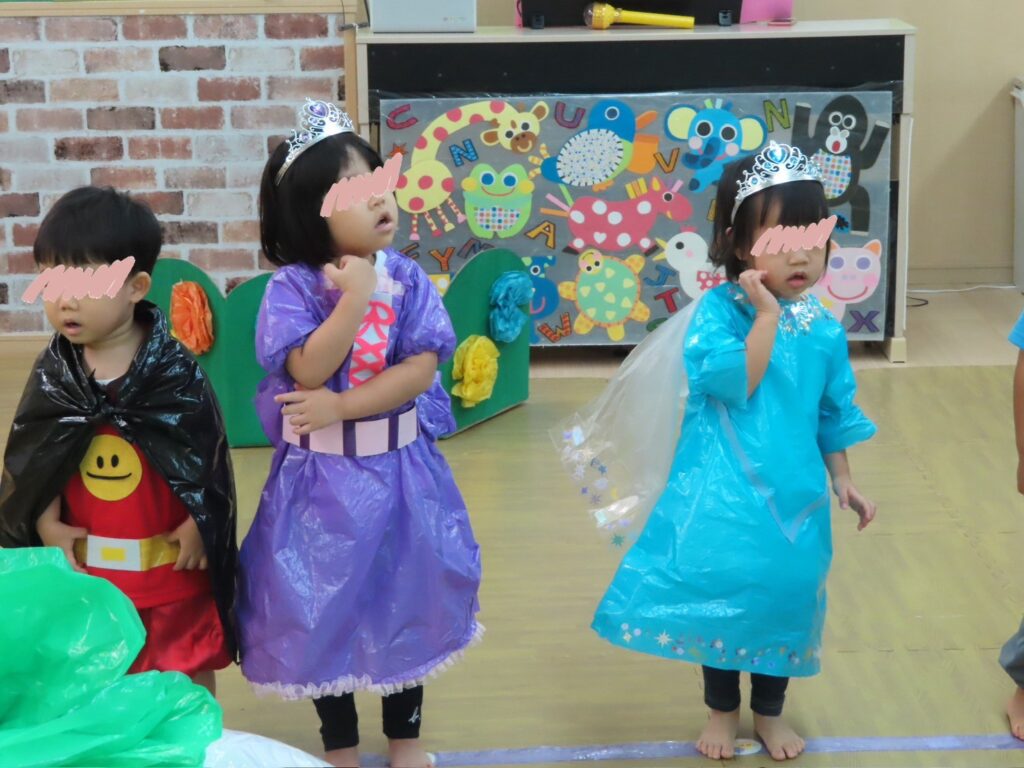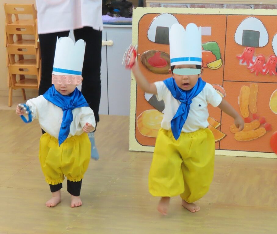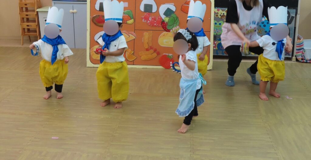 1歳児さんはコックさんに変身してお弁当を作ったり、ベイビーシャークに変身して体操を踊ってくれました🎶