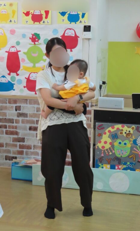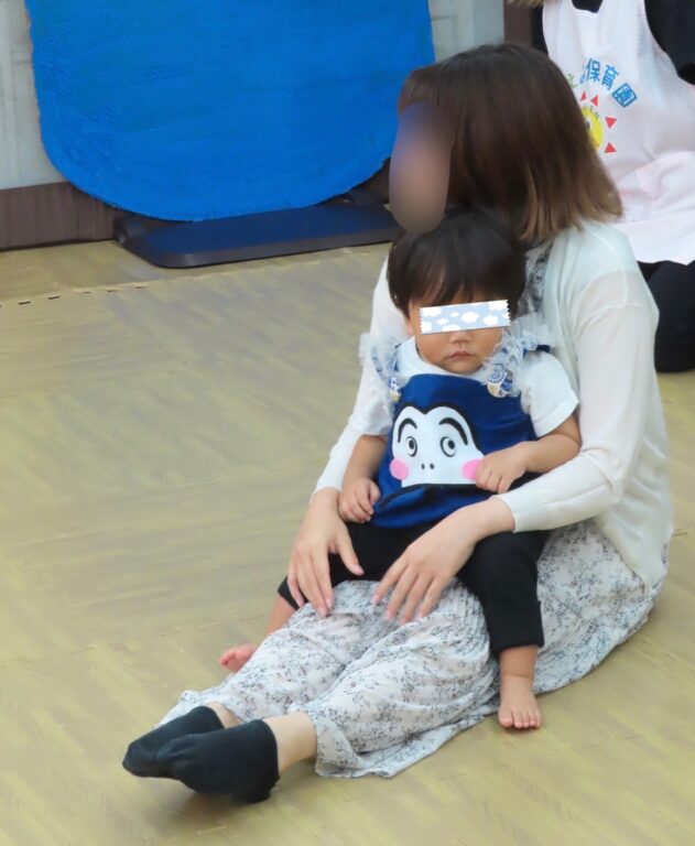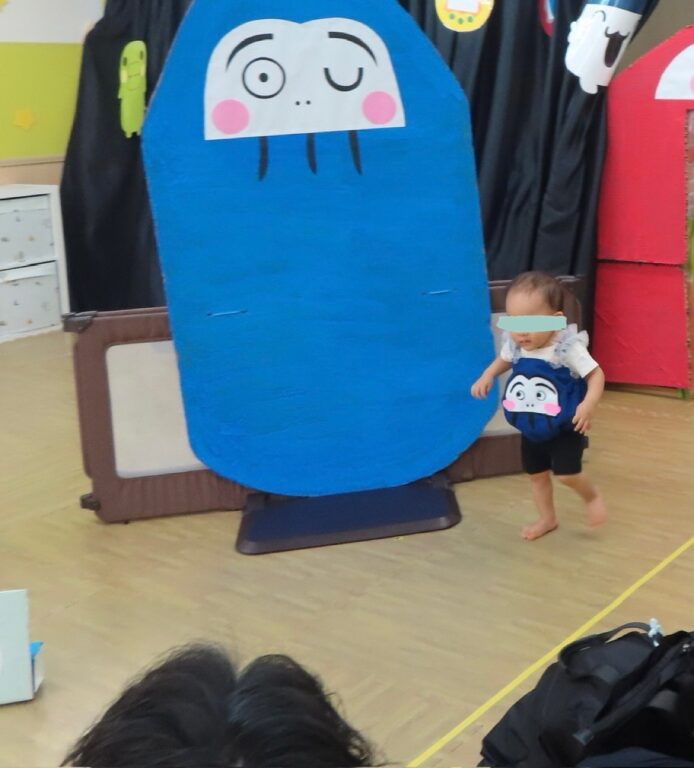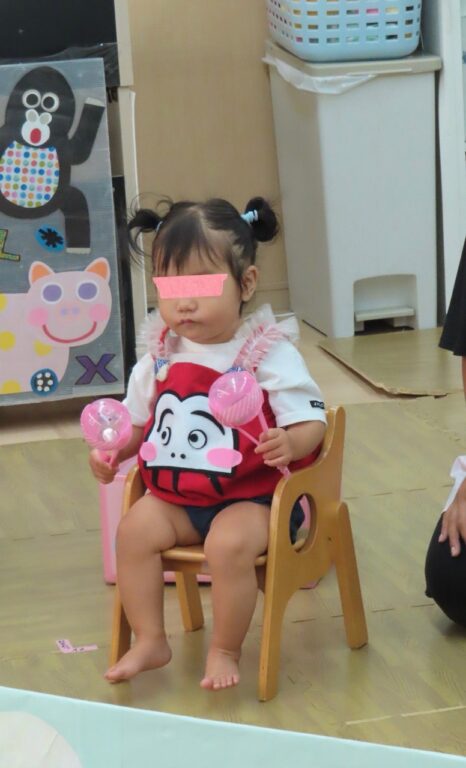 0歳児さんはだるまさんに変身して楽器遊びをしたりお父さんお母さんと一緒にふれあい遊びをしました🎶