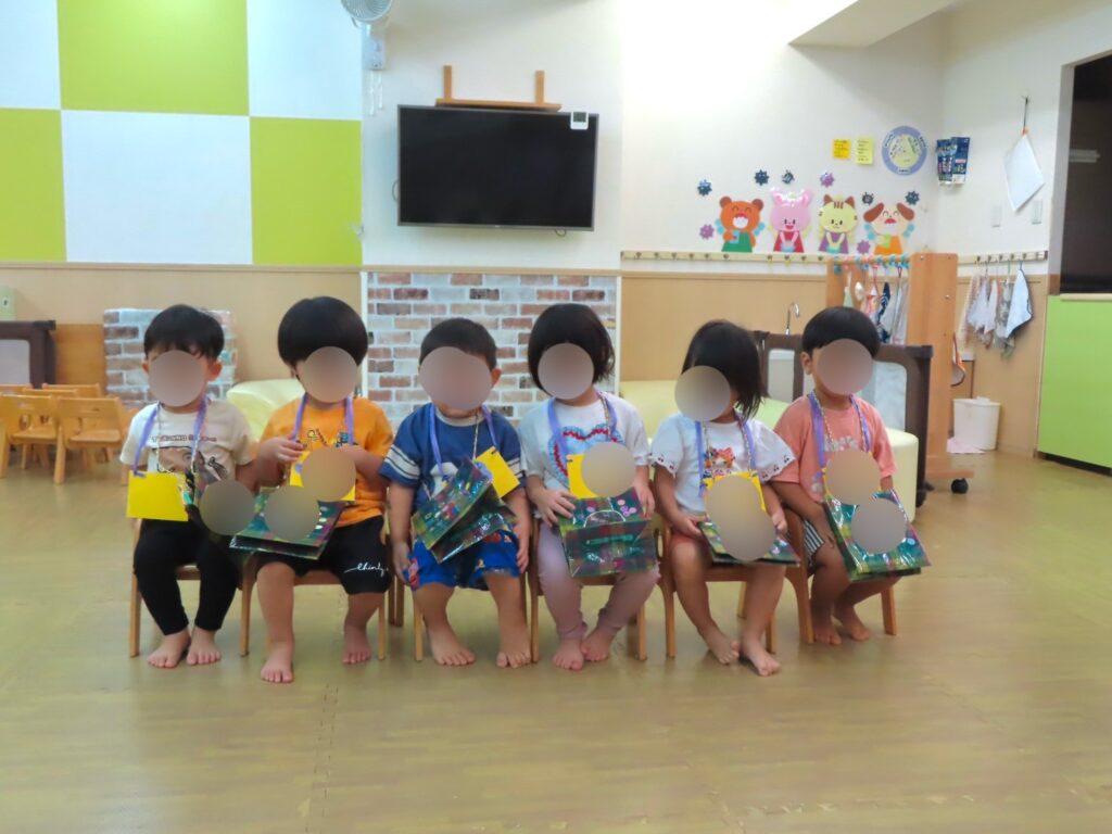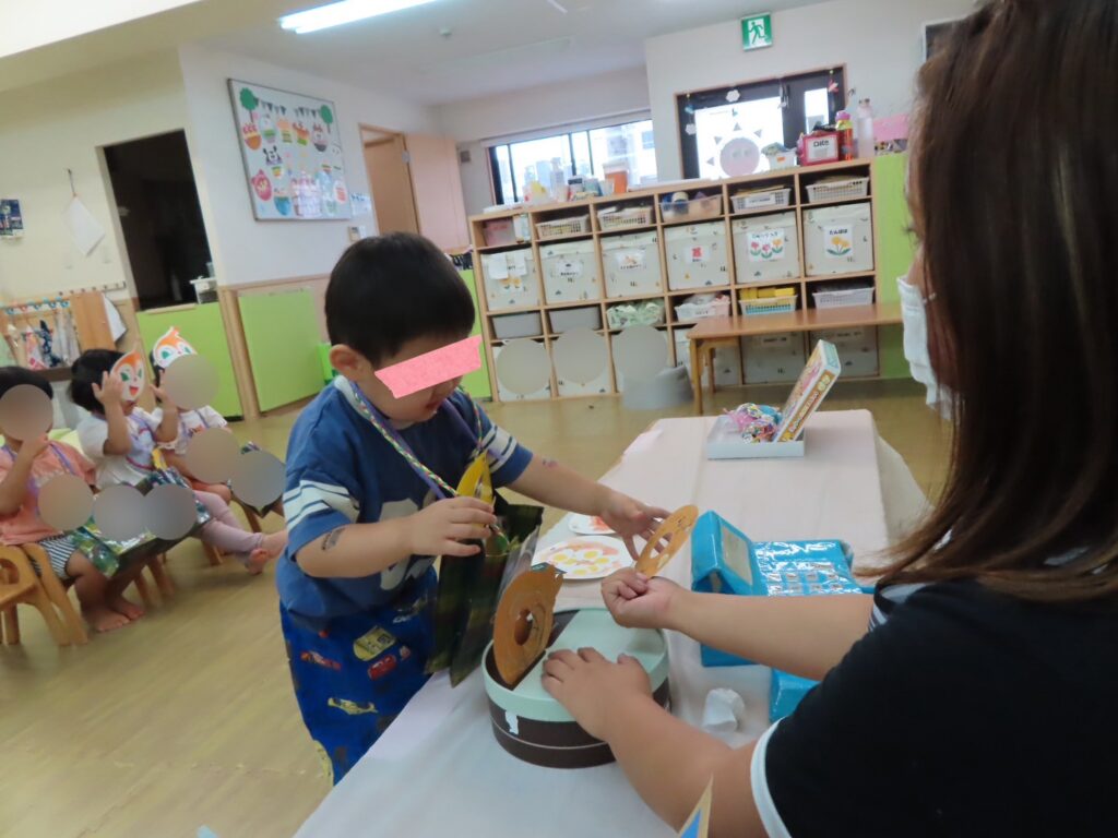 買ったものを身につけて1歳児さんや0歳児さんにもみてみてー😆と自慢してくれたひまわり組さんでした☺️