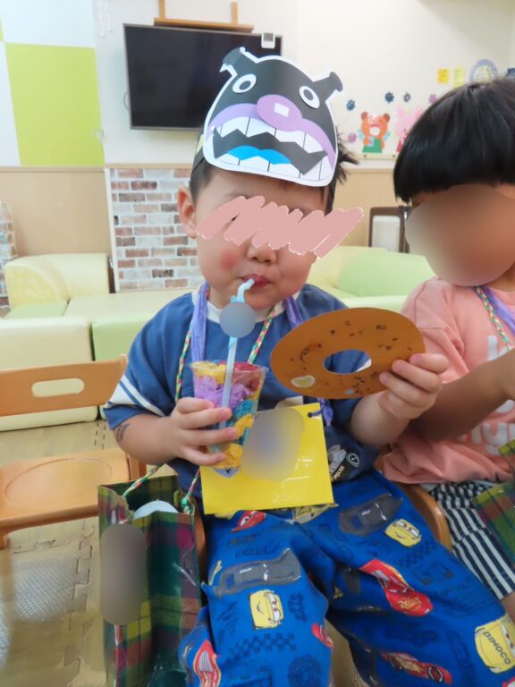 製作が大好きでとっても上手な2歳児さんはラーメンやドーナツ、ジュースなどたくさんのものを作ってきました🍹そして自分たちでお財布に名前も貼って準備万端✨️