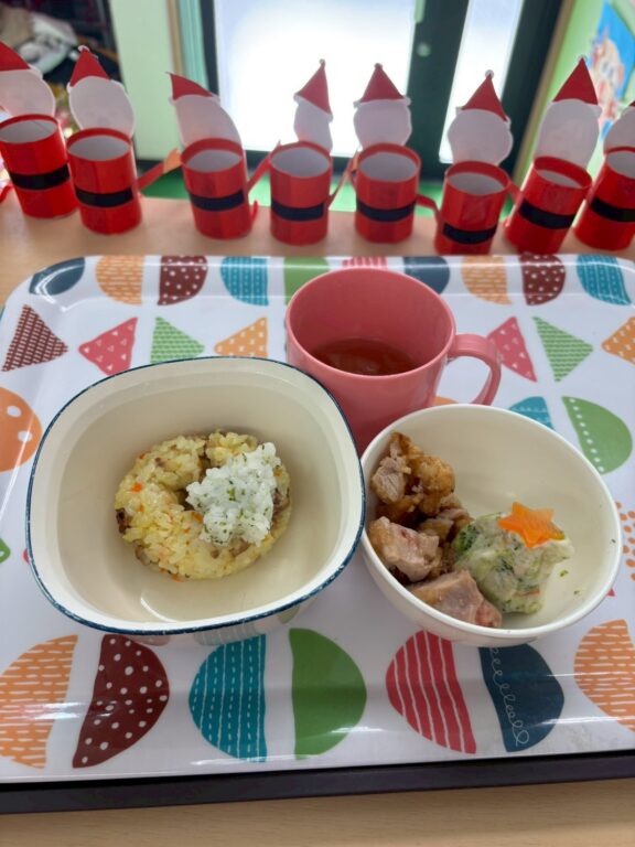 クリスマス会の日の給食は見た目も楽しい行事食でした🎄