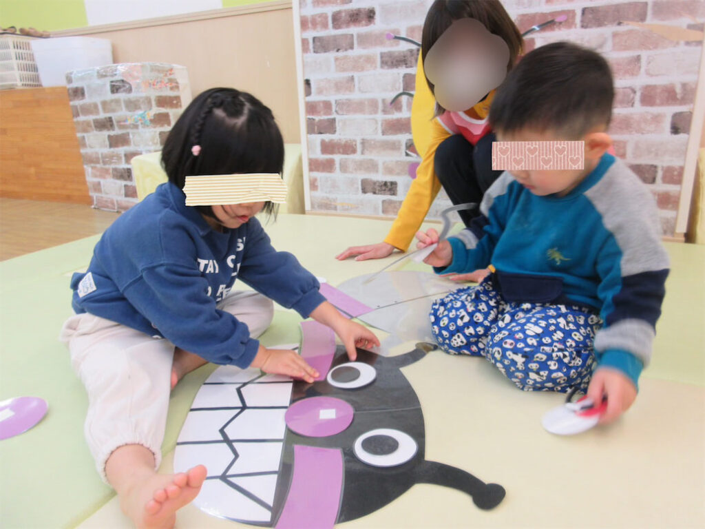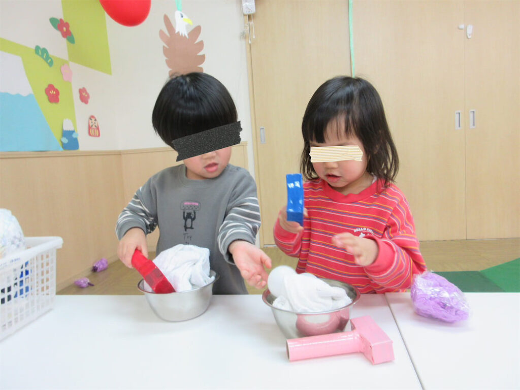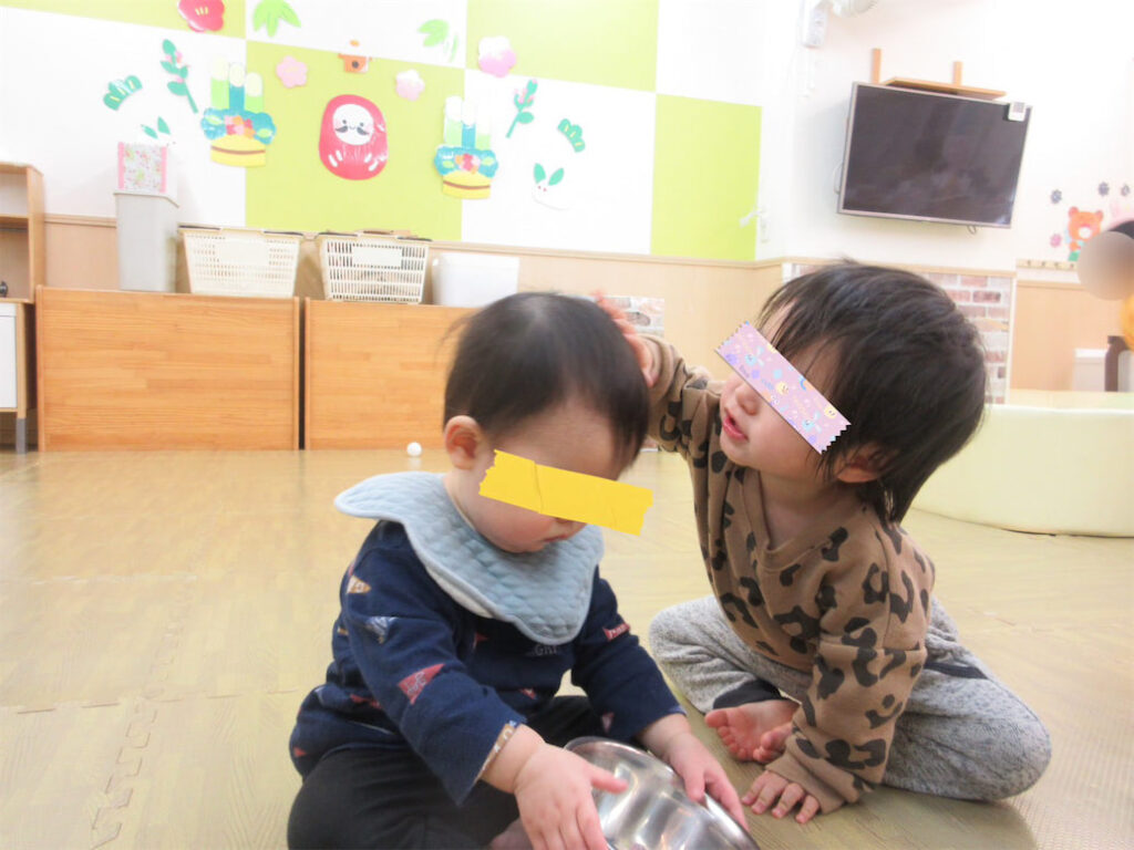 こま回しや福笑い、お餅つきなどたくさんのお正月遊びを体験し、思い思いに楽しみました💕