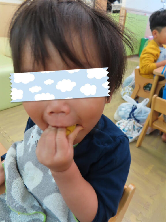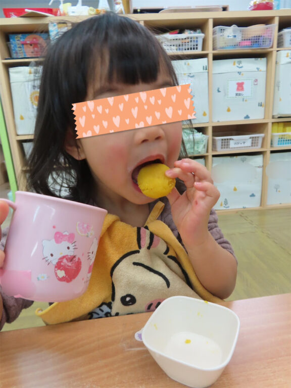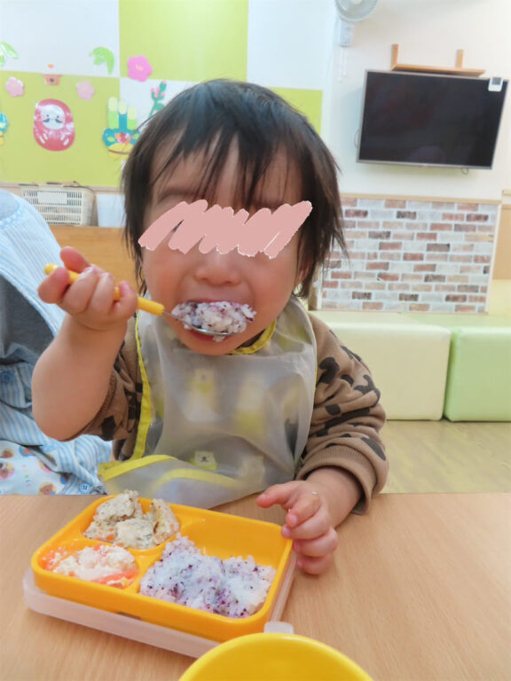 給食は行事食でお正月メニュー🎍「美味しいね」と楽しい雰囲気の中パクパクみんな食べていましたよ😋おやつはお芋きんとんで、甘くてとても美味しくて子供たちにも大人気のおやつでした✨️